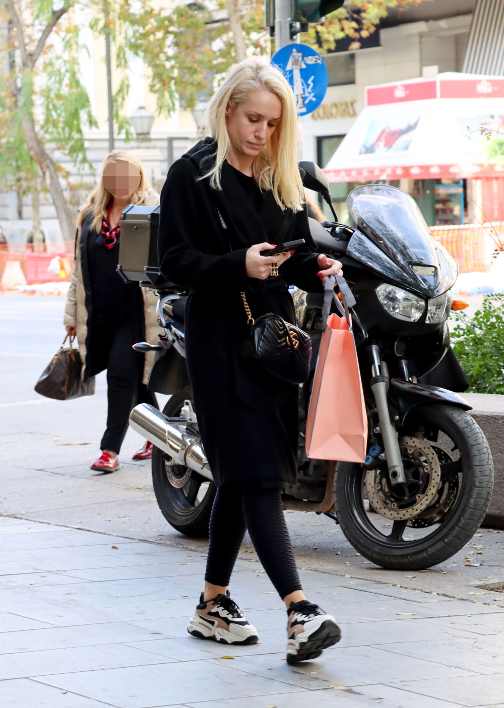 Ο φωτογραφικός φακός απαθανάτισε την Κατερίνα Παναγοπούλου στο κέντρο της Αθήνας και μάλιστα συνδύασε τη διαχρονική, μαύρη τσάντα Gucci με sporty look.