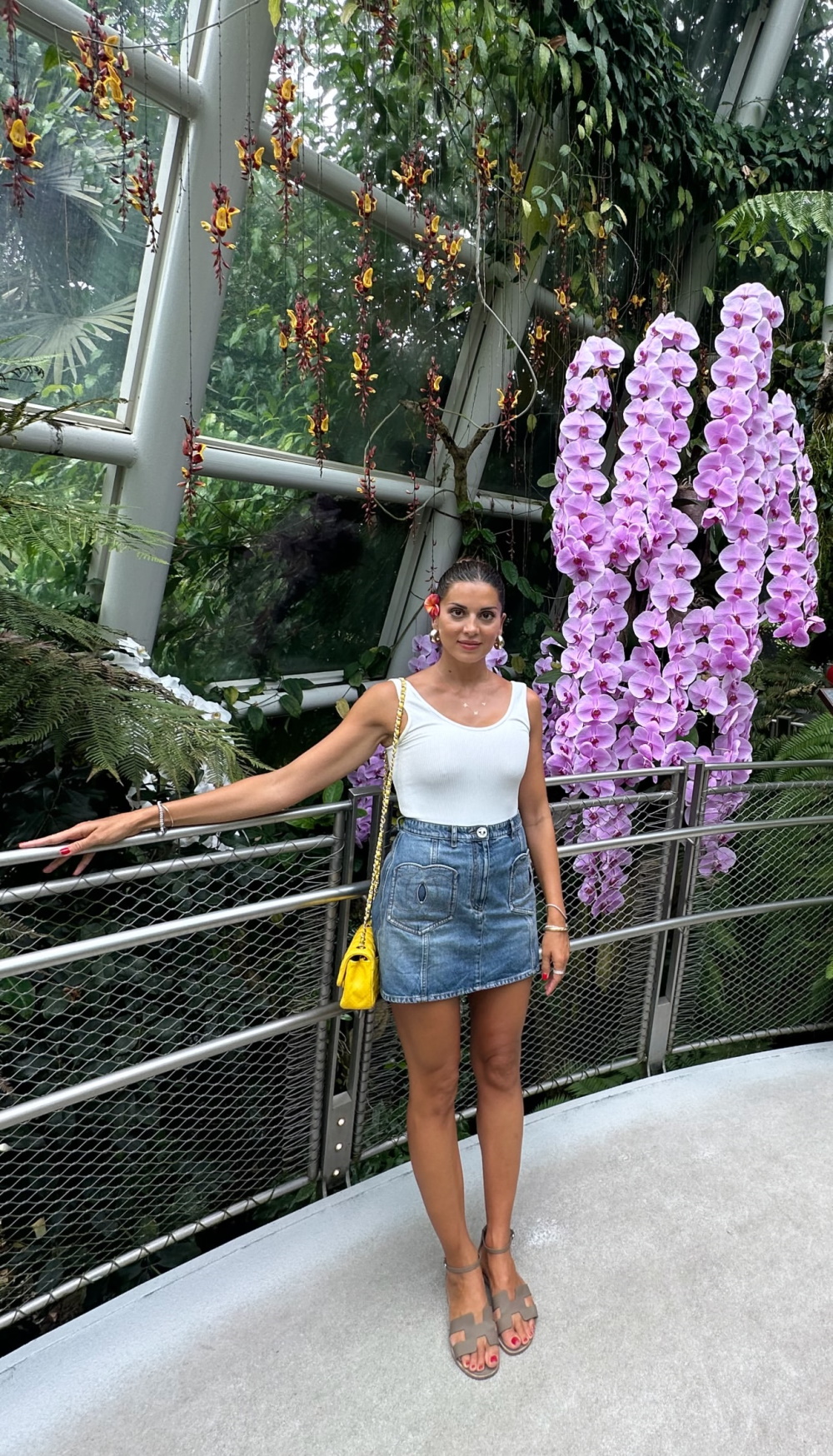 Ντυμενη απλά με σορτς αλλά και τζιν μίνι φούστα ποζάρει σε τοπία που αγαπούν οι Ιnstagrammers.