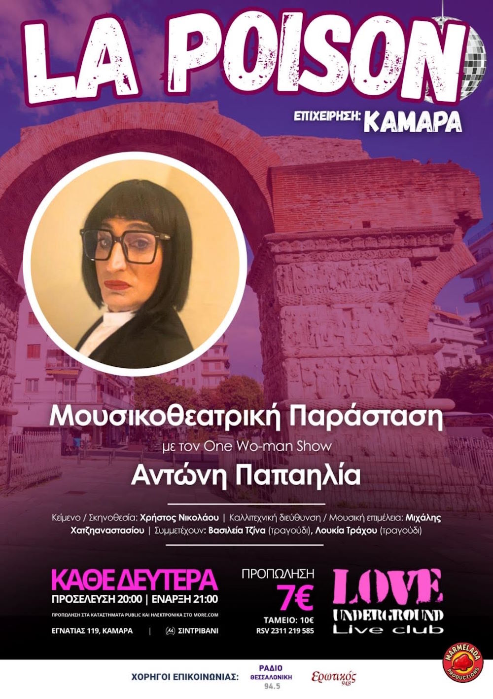 Μια παραγωγή της Marmelada Productions, στο Love Underground – Εγνατίας 119 (Καμάρα Θεσσαλονίκης) Πρεμιέρα την 1η Δεκεμβρίου και … περαστικά σας. Open doors: 20:00. Ώρα έναρξης: 21:00 και μόνο με ραντεβού.