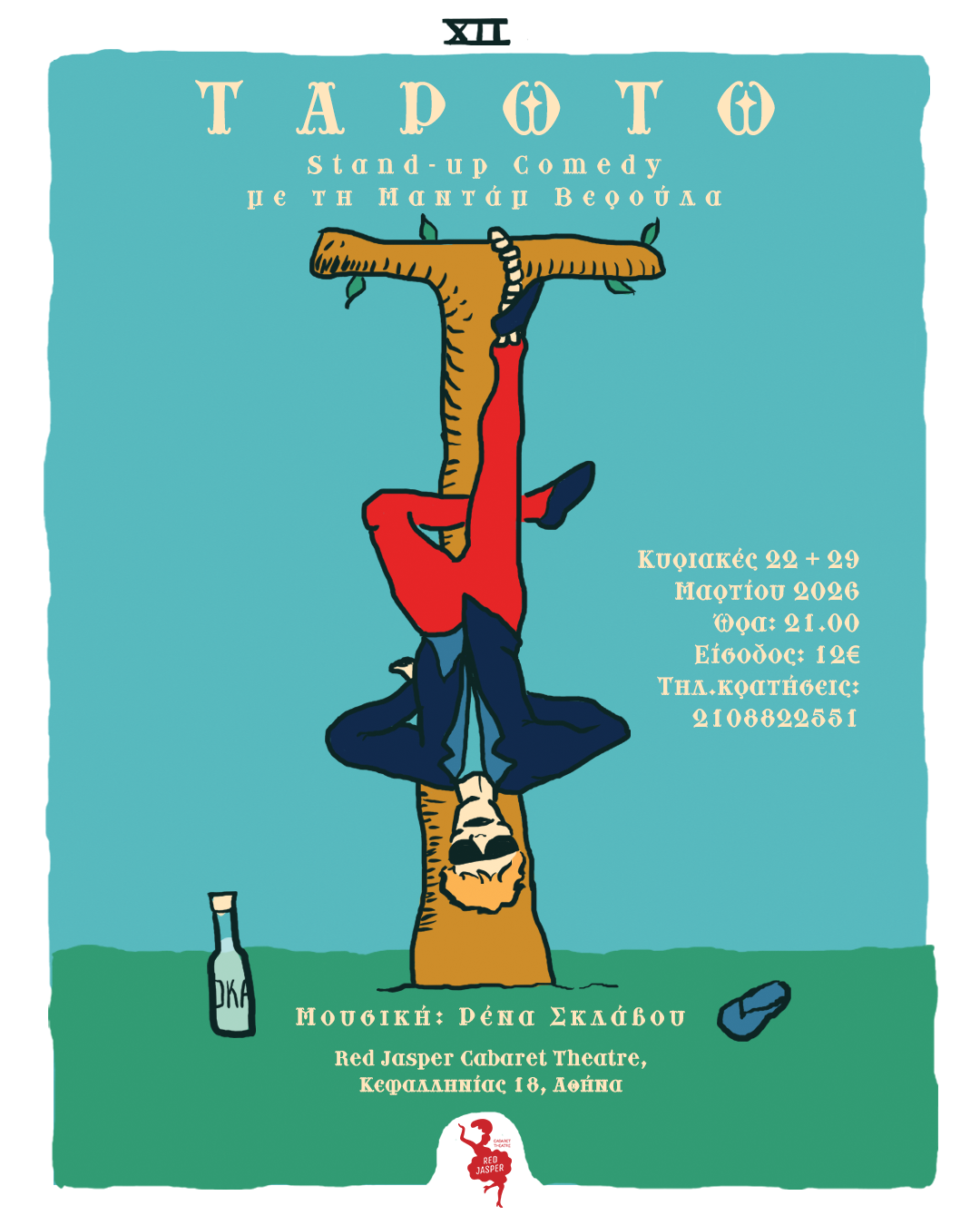 Το Red Jasper Cabaret Theatre παρουσιάζει για δύο παραστάσεις, στις 22 και 29 Μαρτίου, ένα παράξενο, μαγεμένο stand-up που δεν έχει ξαναγίνει. Ένα μίγμα μαγείας, μαντείας και κωμωδίας.