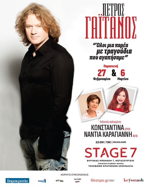 Με τη συμμετοχή ορχήστρας που αποτελείται από 4 εξαιρετικούς σολίστες μουσικούς και αγαπημένους καλεσμένους ο Πέτρος Γαϊτάνος που όλα αυτά τα χρόνια έχουμε συνηθίσει να τον ακούμε σχεδόν μόνον σε συναυλίες, επανέρχεται μετά από πολύ καιρό με εμφανίσεις στην εξαιρετική ζεστή μουσική σκηνή στην Αθήνα Stage 7 ερμηνεύοντας επιλογές από αγαπημένα τραγούδια Ελλήνων συνθετών.
