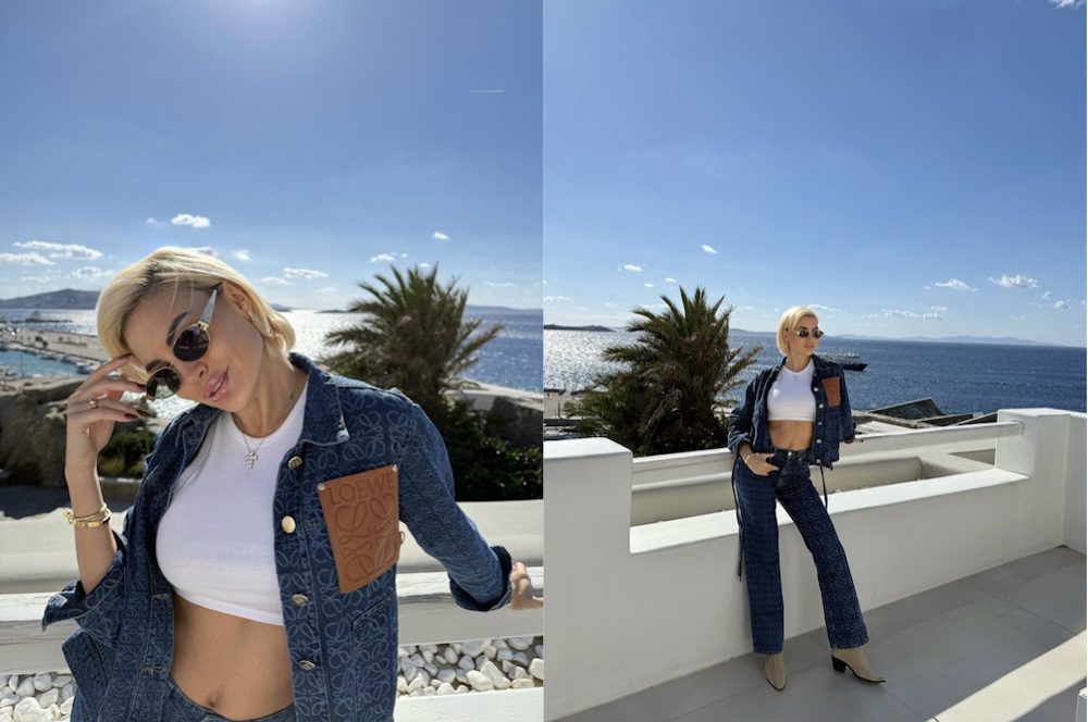 Το denim γίνεται, έτσι, το σημείο συνάντησης δύο κόσμων. Από τη μία, η ακατέργαστη πλευρά του δρόμου. Από την άλλη, το glamour μιας γυναίκας που ξέρει να ελέγχει το βλέμμα. Η Παναγιώταρου συνδυάζει τα δύο χωρίς υπερβολή, χωρίς αντίθεση. Σαν να είναι διαφορετικές πτυχές του ίδιου καθρέφτη.