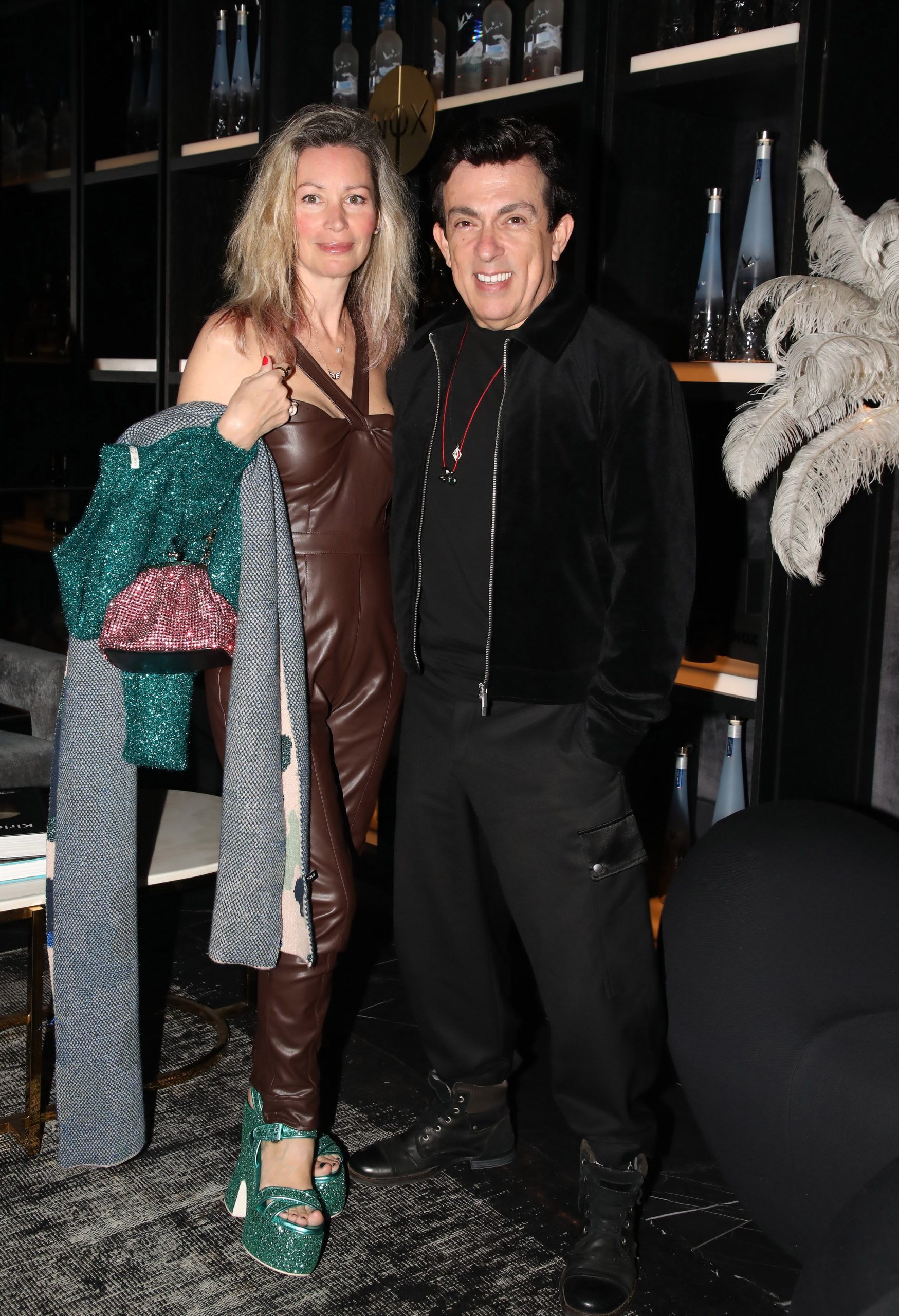 Σε στιγμιότυπο της βραδιάς, η Άριελ Κωνσταντινίδη φωτογραφήθηκε και με τον Δημήτρη Γιώτη, κρατώντας στους ώμους της ένα γκρι παλτό που συμπλήρωνε το βραδινό της outfit.
