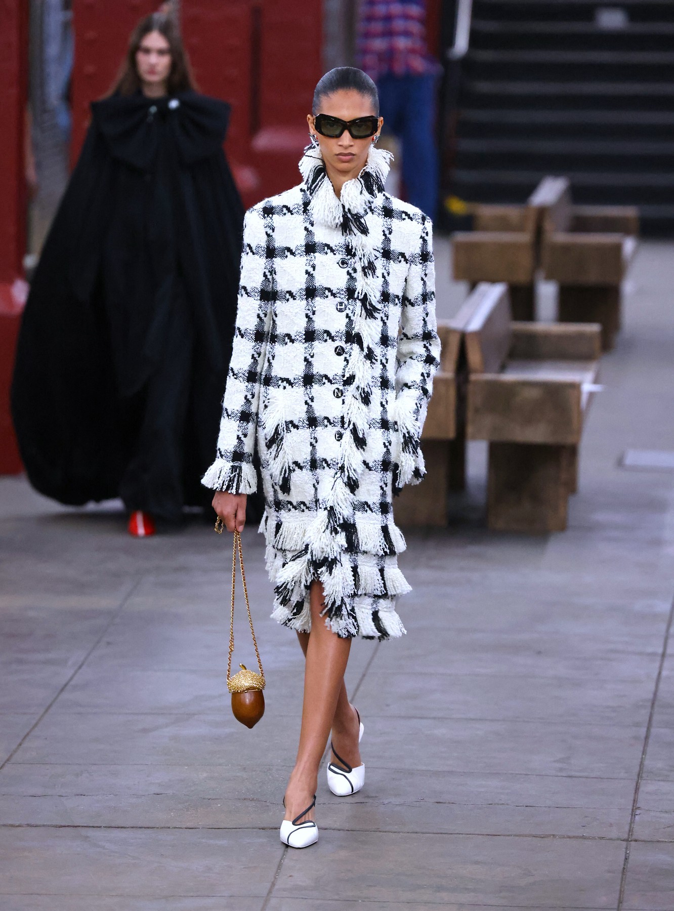 Το tweed, το διαχρονικό σύμβολο της Chanel, επιστρέφει σε νέα διάσταση. Αποτελεί τη βάση για κοστούμια, σακάκια, φούστες και πανωφόρια, ανανεωμένο με μαλακές υφές, mohair‑like loops και χρωματικές παλέτες από ουδέτερα ecru και καφέ μέχρι plum και πράσινο. Το tweed πλέον δεν περιορίζεται στο «σοβαρό» office look· συνδυάζεται με sneakers, loafers ή κομψές μπαλαρίνες, μεταμορφώνοντας τα σύνολα σε day-to-night επιλογές που μπορούν να φορεθούν παντού.