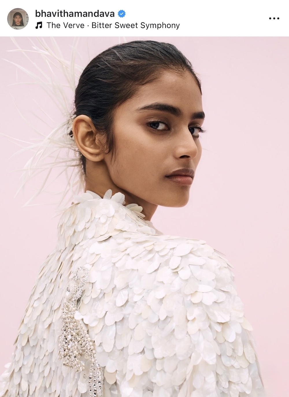Η Μπαβίθα Μαντάβα δεν χρειάζεται να αποδείξει τίποτα για την αξία της. Τα μεγάλα, καλοσυνάτα μάτια της, η αρμονία της σιλουέτας της και τα πλούσια μαλλιά της, σε συνδυασμό με τα ιδιαίτερα χαρακτηριστικά της καταγωγής της, δικαιολογούν απόλυτα την παρουσία της, αλλά και το μέλλον της, στον απαιτητικό κόσμο της μόδας.