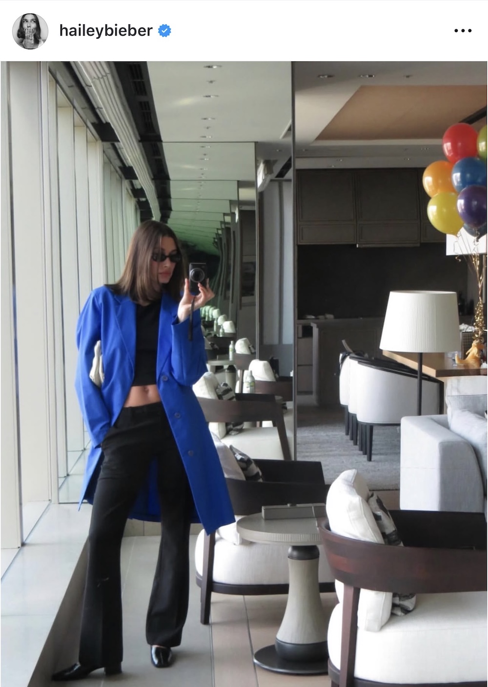 Σε στιγμιότυπα από το ταξίδι της στο Τόκιο, από όπου προέρχονται και οι φωτογραφίες στο instagram, επέλεξε ένα ιδιαίτερα ενδιαφέρον outfit. Με το ίδιο crop top, τα black tailored flair trousers και τα χαρακτηριστικά της it shoes, διαφοροποίησε το σύνολο προσθέτοντας ένα light coat σε έντονο blue royal και ένα ανοιχτόχρωμο clutch bag.