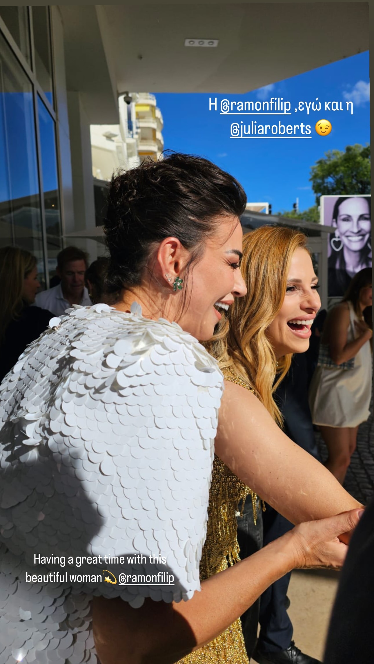 Μάλιστα οι δύο γυναίκες πόζαραν σε κοινή selifie με φόντο την τεράστια αφίσα της Τζούλια Ρόμπερτς.