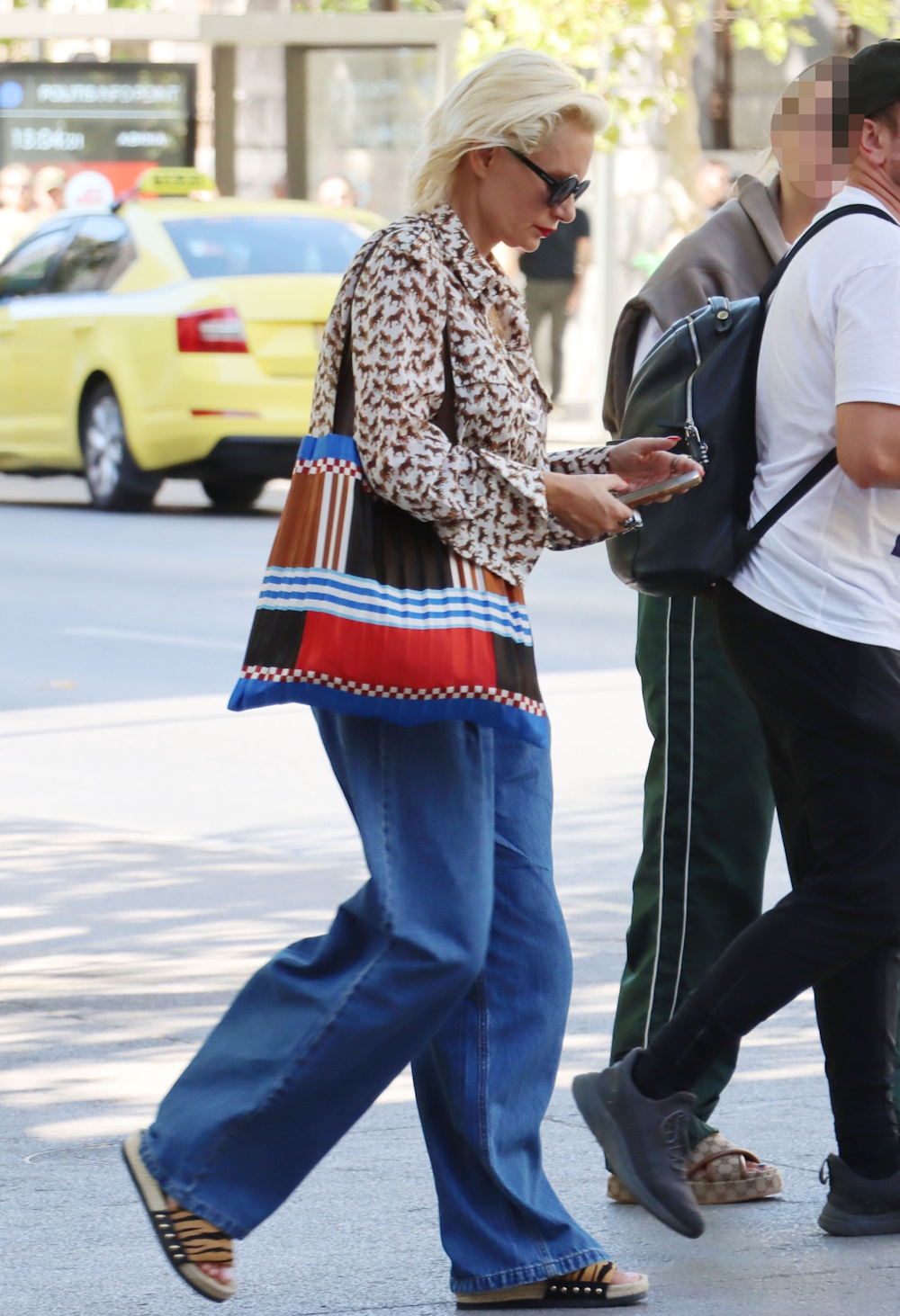 Ο φωτογραφικός φακός την απαθανάτισε πρόσφατα ντυμένη casual στο κέντρο της Αθήνας. Έχοντας ως κεντρικό στοιχείο του outfit της ένα ψηλόμεσο blue wide leg τζιν σε loose γραμμή με όγκο, άρχισε να ολοκληρώνει τον καμβά της συνδυάζοντας prints με θάρρος.