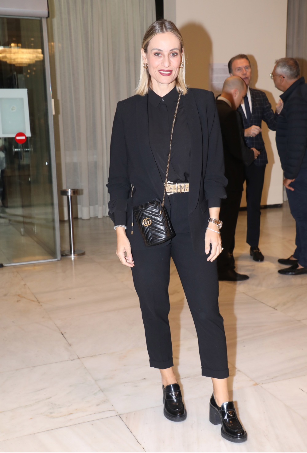 Ολοκλήρωσε το σύνολο με διακριτικά κοσμήματα, ζώνη και τσάντα Gucci. Μάλιστα διάλεξε τα πιο περιζήτητα παπούτσια της σεζόν. Μιλάμε για τα ψηλοτάκουνα loafers. Ένα στυλ που αυτή τη σεζόν θα φορεθεί πολύ. Μάλιστα η Ελεωνόρα Μελέτη επέλεξε ένα σχέδιο από τη συλλογή του οίκου Prada.