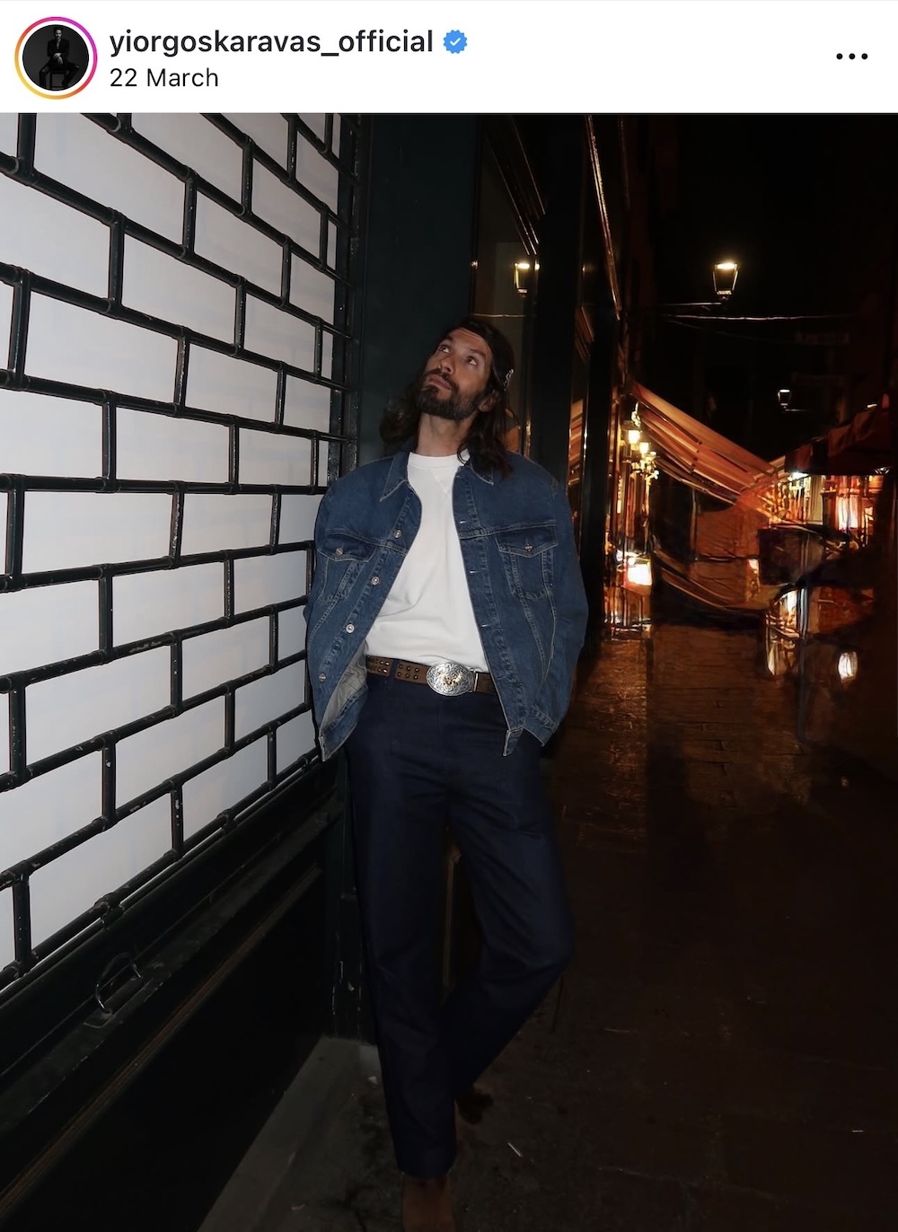 Το denim jacket είναι ένα ρούχο που δεν περισσεύει ποτέ. Διαθέσιμο σε διαφορετικά cuts, χρώματα και επεξεργασίες, λειτουργεί ως genderless δώρο που αγαπούν όλες οι γενιές. Tight ή oversized, casual ή πιο statement, προσαρμόζεται σε κάθε στιλ. Ο Γιώργος Καράβας το επιλέγει συχνά τόσο για everyday walks όσο και για πιο night outs .
