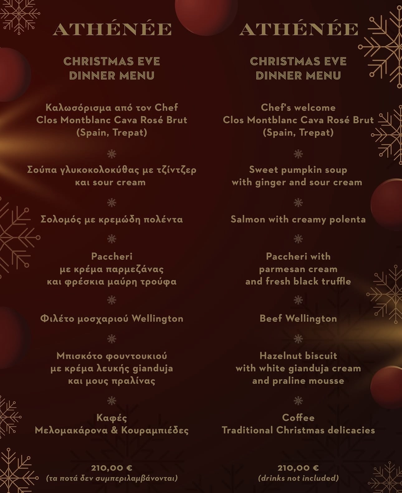 Την περίοδο των γιορτών, αποκτά μια ακόμη διάσταση. Τα χριστουγεννιάτικα και πρωτοχρονιάτικα ρεβεγιόν του δεν είναι απλώς δείπνα. Είναι βραδιές συνάντησης, με μουσική, χαμηλό φωτισμό και την αίσθηση ότι βρίσκεσαι στο σωστό σημείο της πόλης τη σωστή στιγμή.
