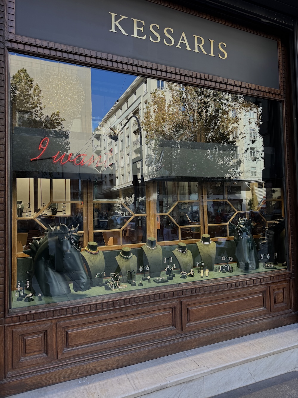Δίπλα τους, ο Kessaris λειτουργεί σαν καθαρά αθηναϊκό σημείο αναφοράς. Όχι ως αντίστιξη, αλλά σαν φυσική συνέχεια του δρόμου. Ένα μέρος όπου το κόσμημα και το ρολόι συνδέονται με την καθημερινότητα της πόλης, με τις συναντήσεις, με τον χρόνο όπως κυλά εδώ. Η παρουσία της Breitling συμπληρώνει αυτή την αίσθηση ακρίβειας και ρυθμού, όχι ως επίδειξη, αλλά ως σταθερότητα. Το κόσμημα στη Βουκουρεστίου δεν είναι υπόσχεση. Είναι μνήμη. Κάτι που κοιτάς, που αναγνωρίζεις, που αφήνεις πίσω σου καθώς συνεχίζεις τη βόλτα, γνωρίζοντας ότι θα το ξαναδείς. Όπως τον ίδιο τον δρόμο.