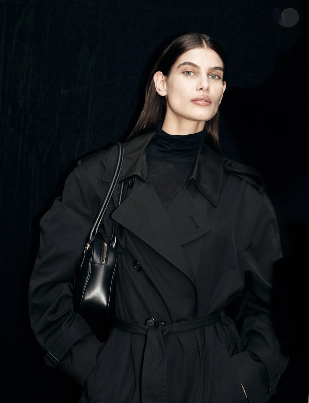 Αξίζει να σταθούμε στο πανωφόρι που διάλεξε να φορέσει, μια μαύρη καπαρντίνα, την οποία συνδύασε με ένα απλό top και μια μαύρη τσάντα στο ίδιο χρώμα.