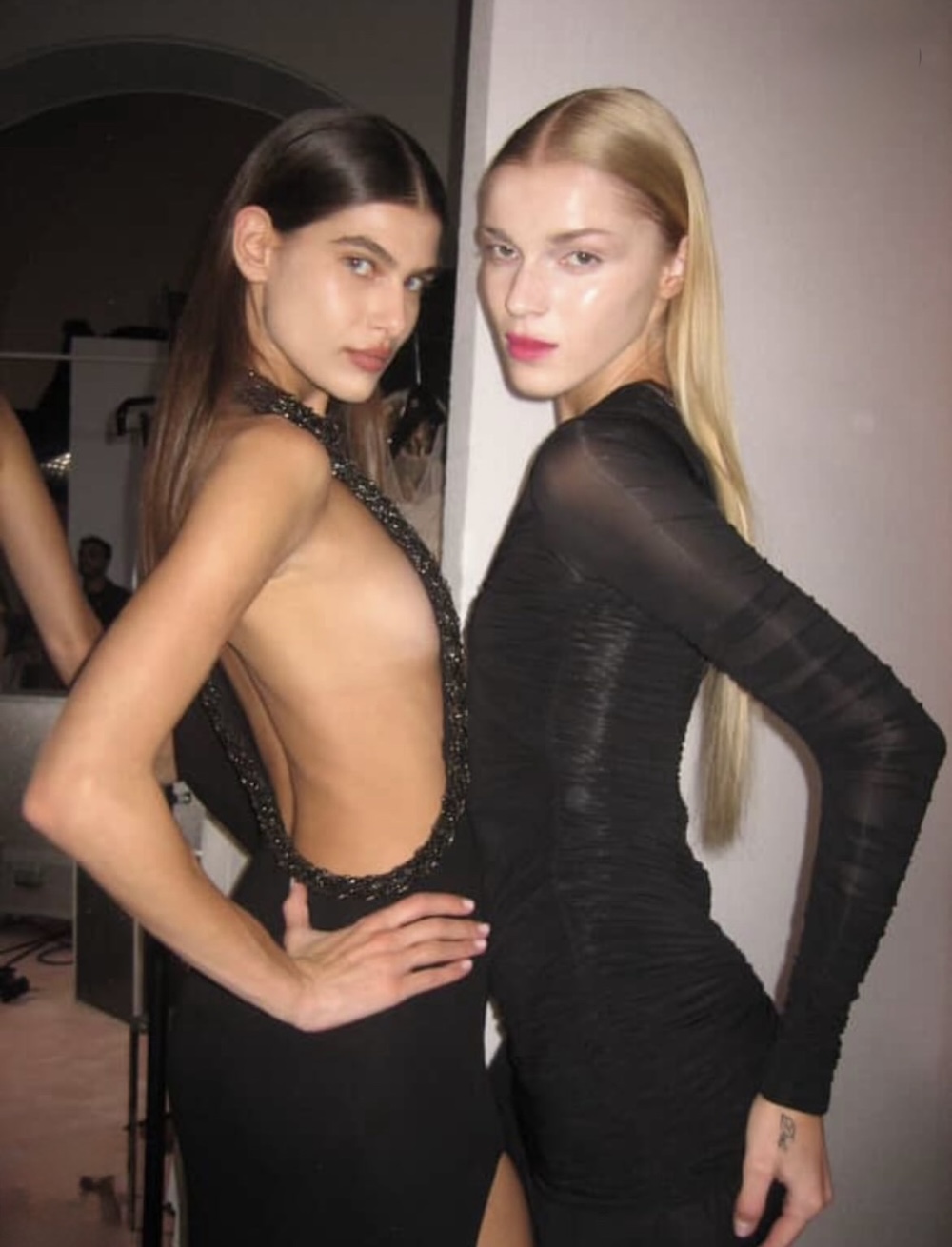 Ξεχώρισαν τα μαύρα φορέματα με κοψίματα, και θηλυκές λεπτομέρειες, που φόρεσε και φωτογραφήθηκε στα παρασκήνια.