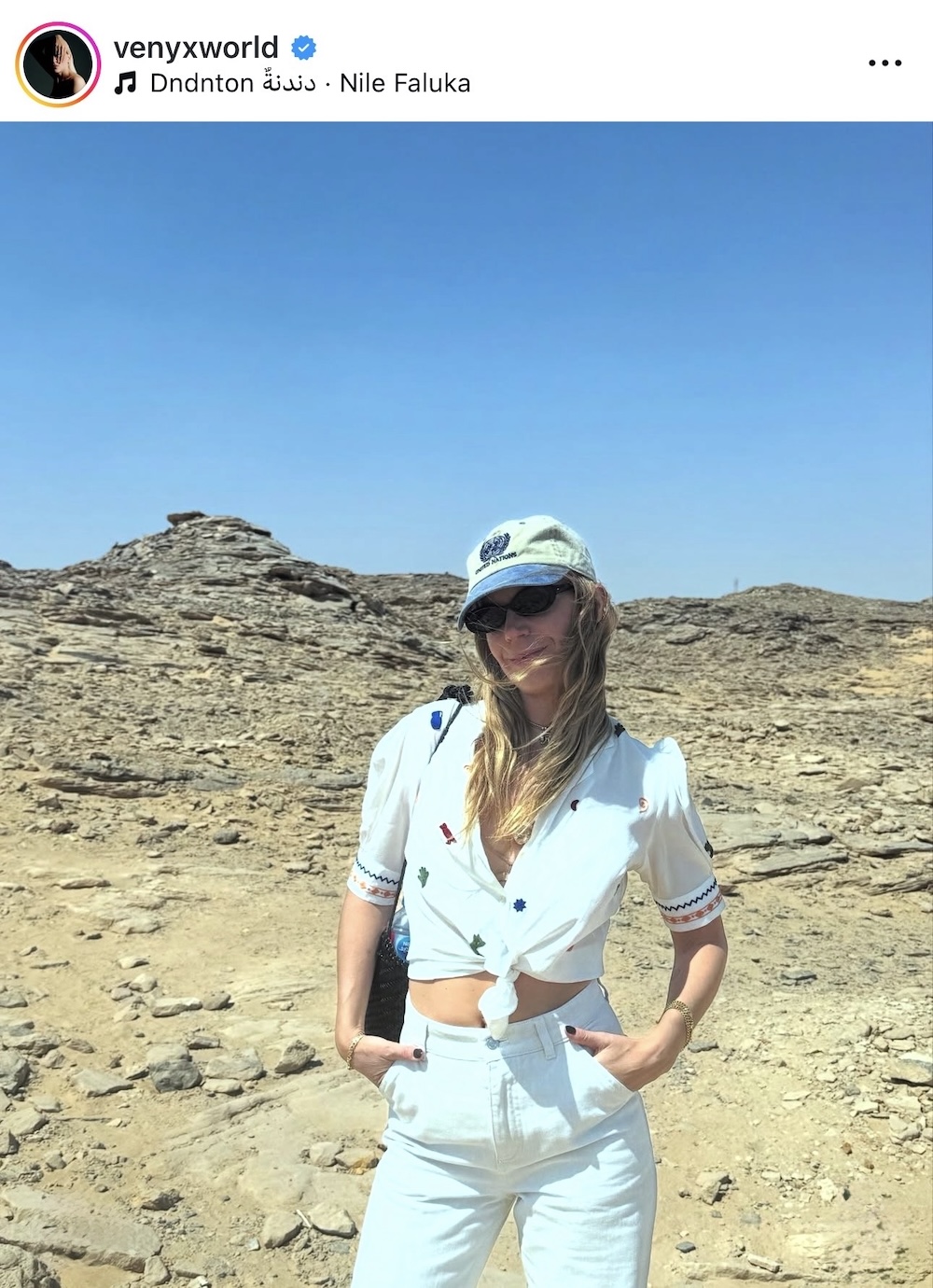 Μέσα από τον προσωπικό της λογαριασμό στο Instagram δείχνει πώς οι τάσεις της υψηλής μόδας μπορούν να μεταφραστούν σε καθημερινές και πιο προσιτές επιλογές. Συγκεκριμένα, σε ένα πρόσφατο post στον προσωπικό της λογαριασμό στο Instagram εμφανίστηκε με ένα modest, cute και άνετο σύνολο, που περιλάμβανε ένα πλεκτό πουλόβερ, ένα κασκόλ, ένα υφασμάτινο μάλλινο παντελόνι σε ίσια γραμμή και ένα ζευγάρι low-tech sneakers Adidas σε έντονο κόκκινο χρώμα.