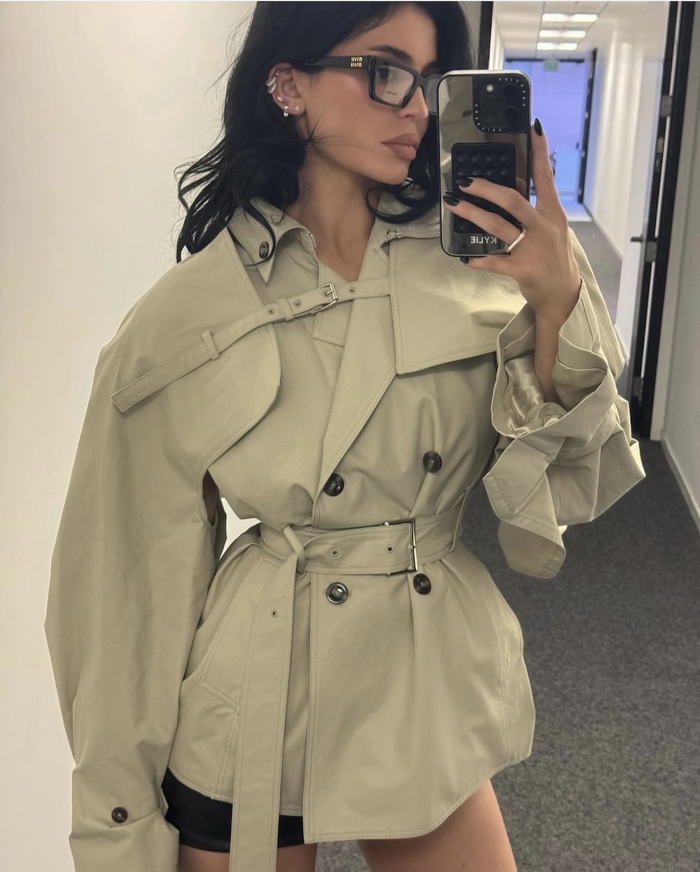 Από τις πιο χαρακτηριστικές εμφανίσεις της Κάιλι Τζένερ ήταν εκείνη που, αντί για το κλασικό μακρύ trench, επέλεξε μία cropped εκδοχή με φαρδιά μανίκια και μεταλλικές λεπτομέρειες. Συνδύασε το πανωφόρι με μίνι δερμάτινη φούστα και ψηλές μπότες, δείχνοντας ότι οι κανόνες του styling μπορούν να ξαναγραφούν, δύο κοντά κομμάτια μπορούν να συνυπάρξουν με κομψότητα και δύναμη.