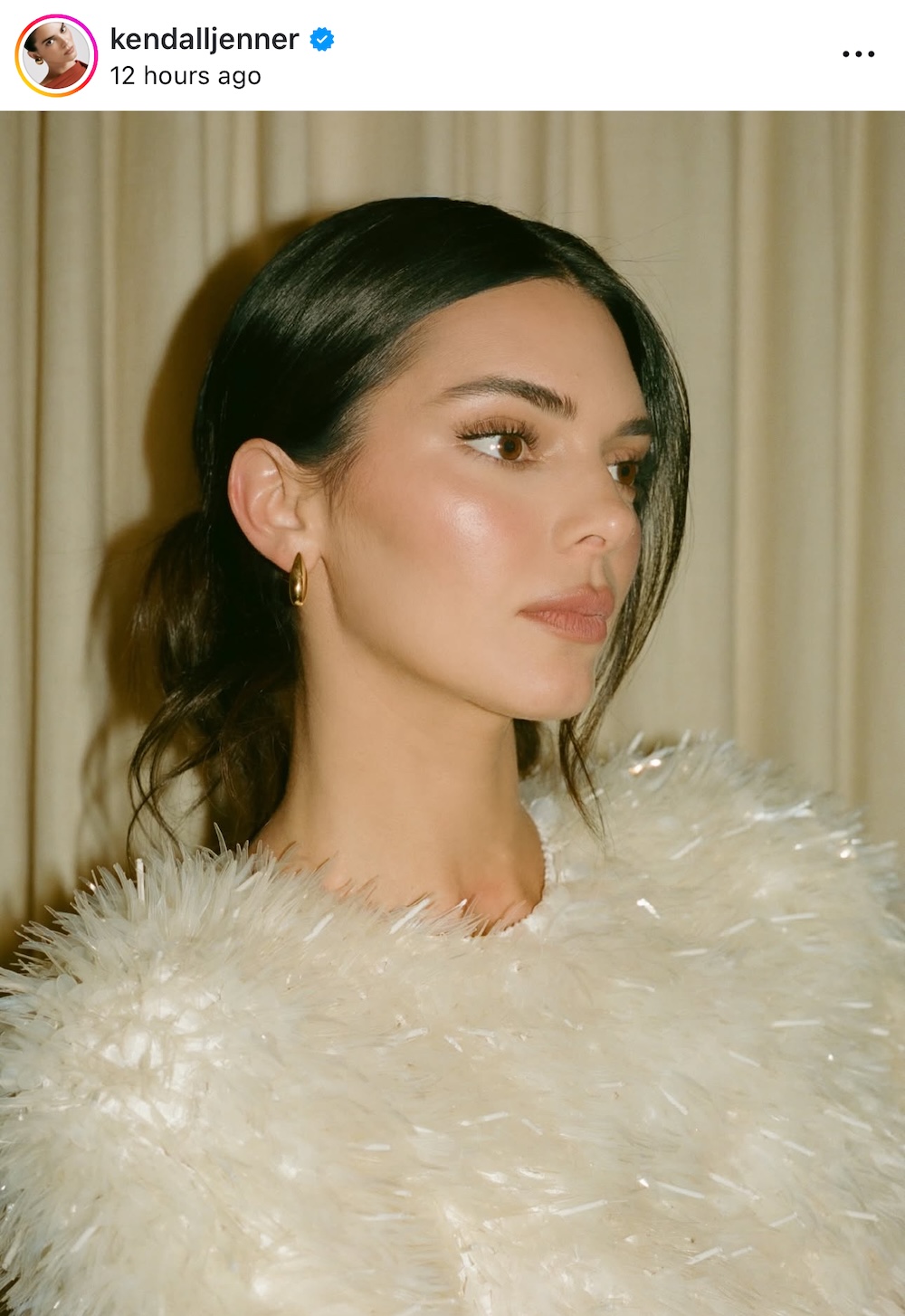 Η Κένταλ Τζένερ επέλεξε διακριτικά κοσμήματα που τόνιζαν με subtle τρόπο την πολυτέλεια της εμφάνισής της. Φόρεσε χρυσούς κρίκους σκουλαρίκια, τα οποία προσέφεραν μια ελαφριά λάμψη και ισορροπούσαν την πλούσια υφή του φορέματος, χωρίς να επισκιάζουν τη βασική δημιουργία του οίκου. Η επιλογή αυτή απέδειξε την ικανότητά της να χρησιμοποιεί τα αξεσουάρ με μέτρο, μετατρέποντάς τα σε μικρές πινελιές κομψότητας που ολοκληρώνουν το σύνολο, δίνοντας μια αίσθηση minimal-glamour, μοντέρνας αλλά και διαχρονικής.