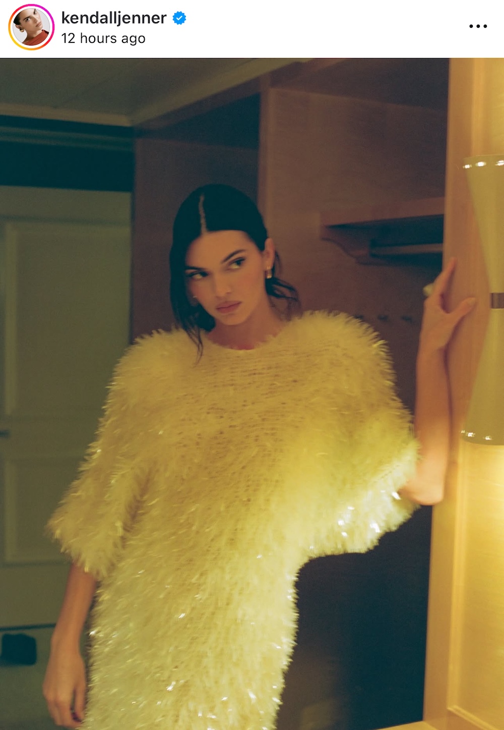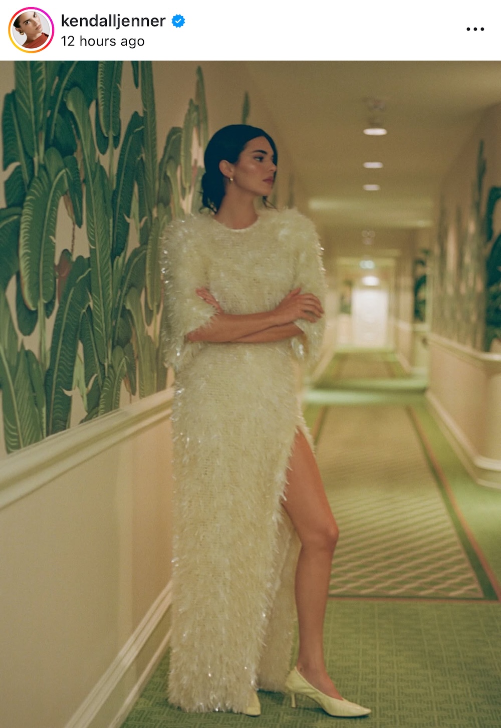 Το styling ήταν επίσης προσεκτικά επιλεγμένο ώστε να μην αποσπά από την υφή του φορέματος. Η Κένταλ Τζένερ συνδύασε το look με τα “Sofia” mules της Bottega Veneta σε buttery-yellow απόχρωση, μια λεπτή και απρόσμενη πινελιά χρώματος. Το μακιγιάζ της παρέμεινε φυσικό, λαμπερό και φωτεινό, τονίζοντας την καθαρή αισθητική του συνόλου.