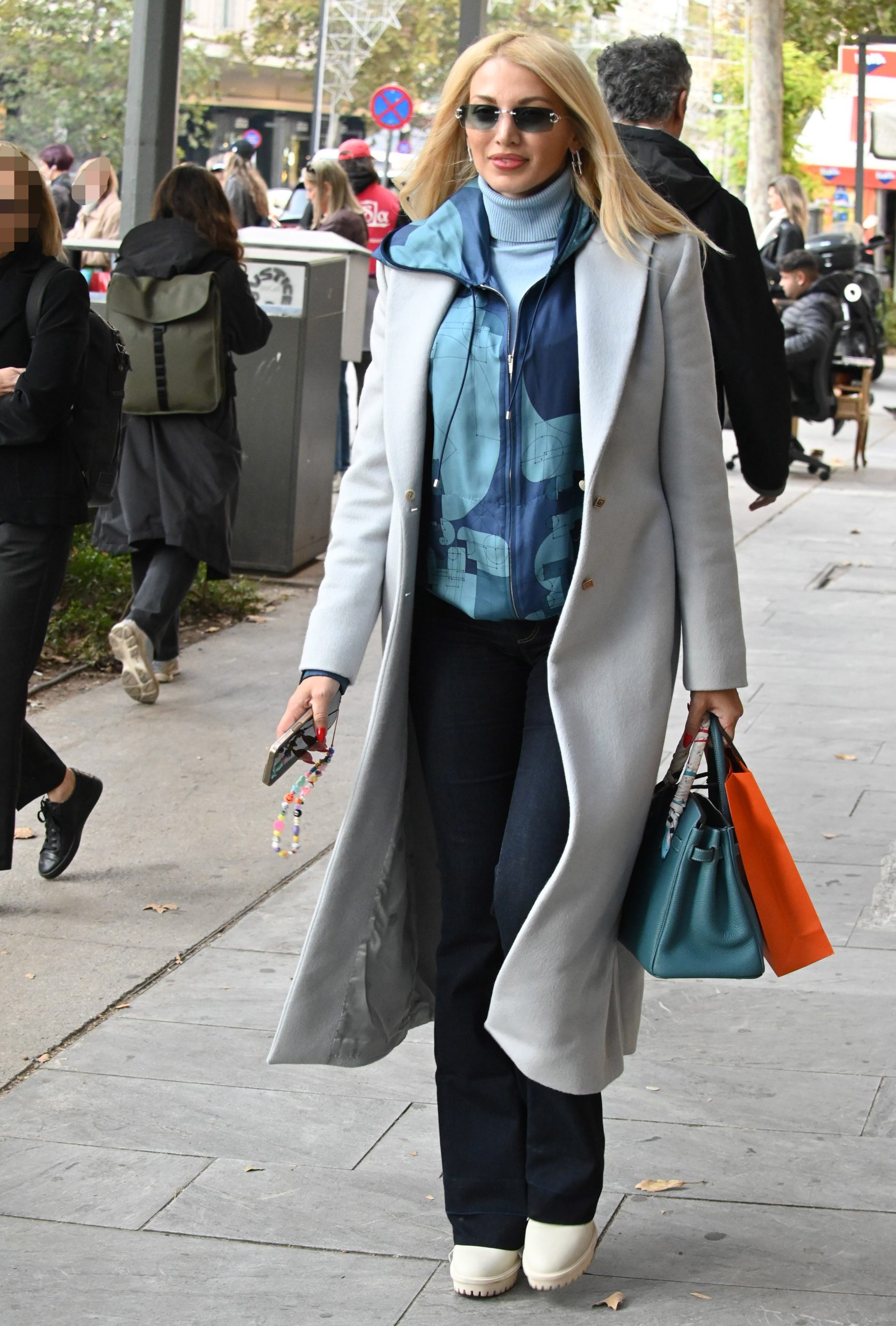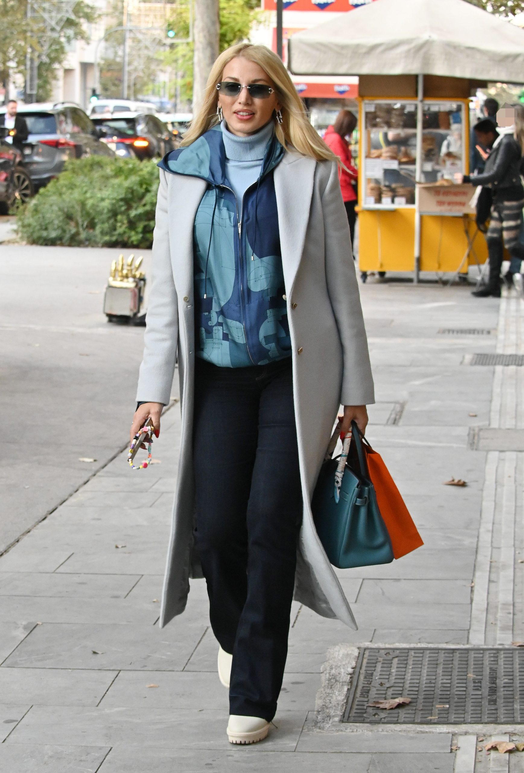 Στα αξεσουάρ ξεχώρισε η τσάντα Hermès σε πετρόλ, που έδωσε χρώμα χωρίς να «φωνάζει». Με γυαλιά ηλίου και διακριτικά κοσμήματα, η Κωνσταντίνα Σπυροπούλου κράτησε το ύφος χαμηλών τόνων, αλλά προσεγμένο.