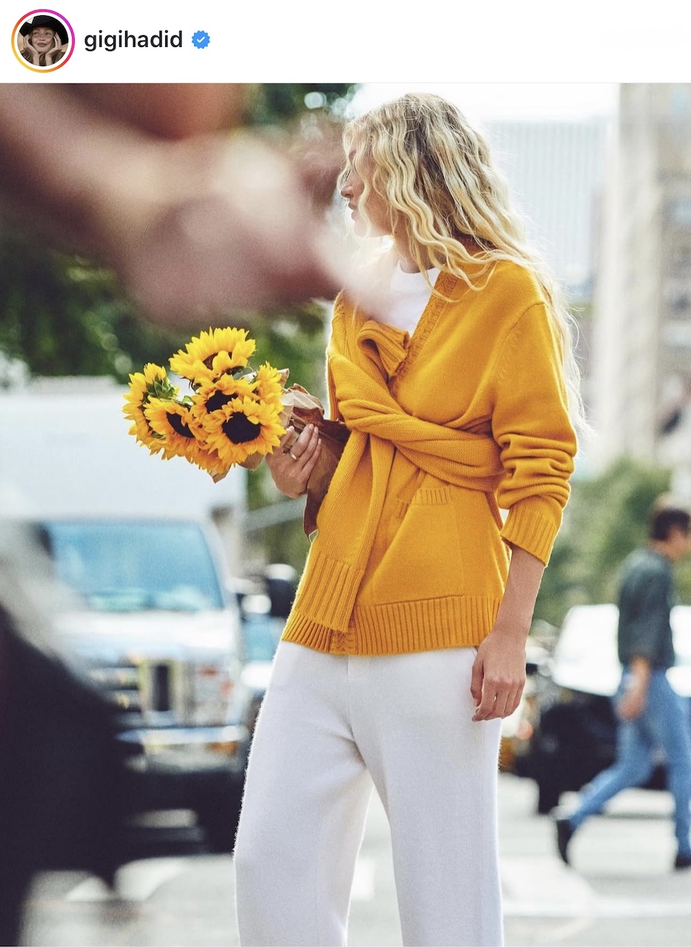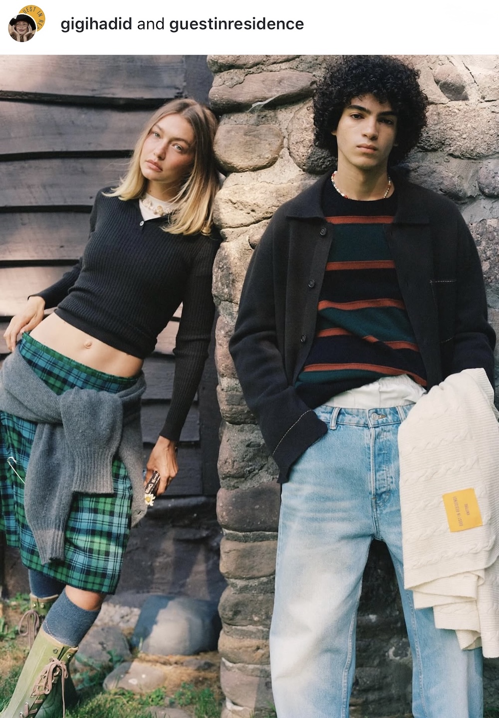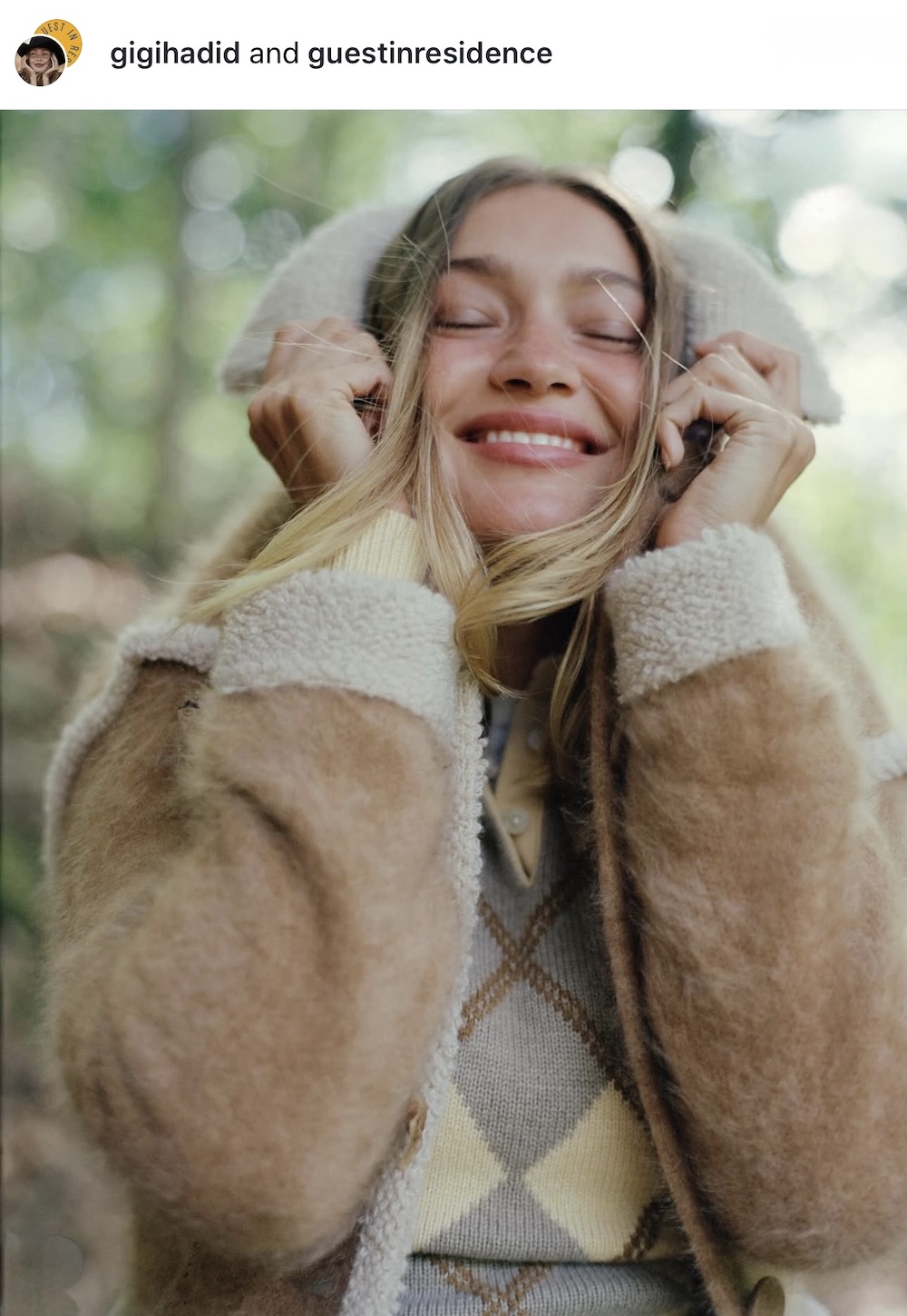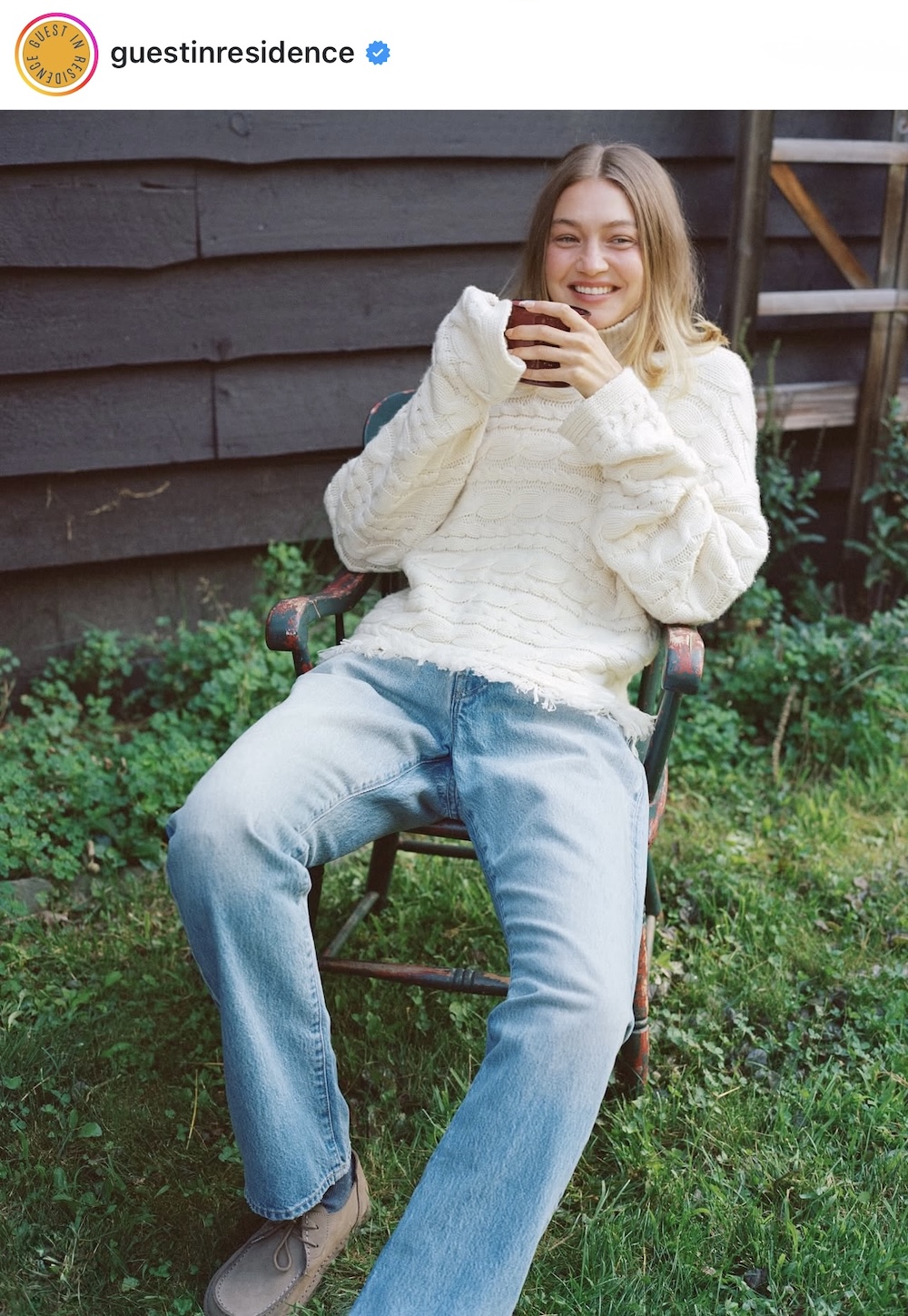 Η Τζίτζι Χαντίντ αγαπούσε τα πλεκτά πολύ πριν δημιουργήσει το 2022 το δικό της brand, Guest in Residence. Από μικρή είχε συναισθηματικό δέσιμο με τέτοια ρούχα, ένα γκρι πουλόβερ με δερμάτινες λεπτομέρειες από τη μητέρα της και ένα κασμιρένιο από τον πατέρα της στάθηκαν η αρχή μιας σχέσης με την άνεση και τη θαλπωρή. Αυτή η αγάπη αποτυπωνόταν στις καθημερινές της εμφανίσεις, πλεκτά πουλόβερ, κάρντιγκαν και ζακέτες, συνδυασμένα με τζιν ή φούστες, σε στυλ απλό και φυσικά κομψό.