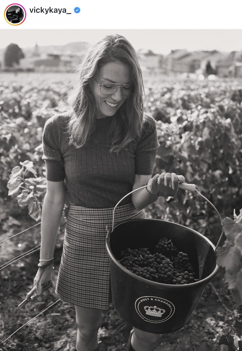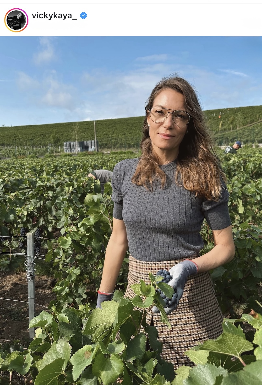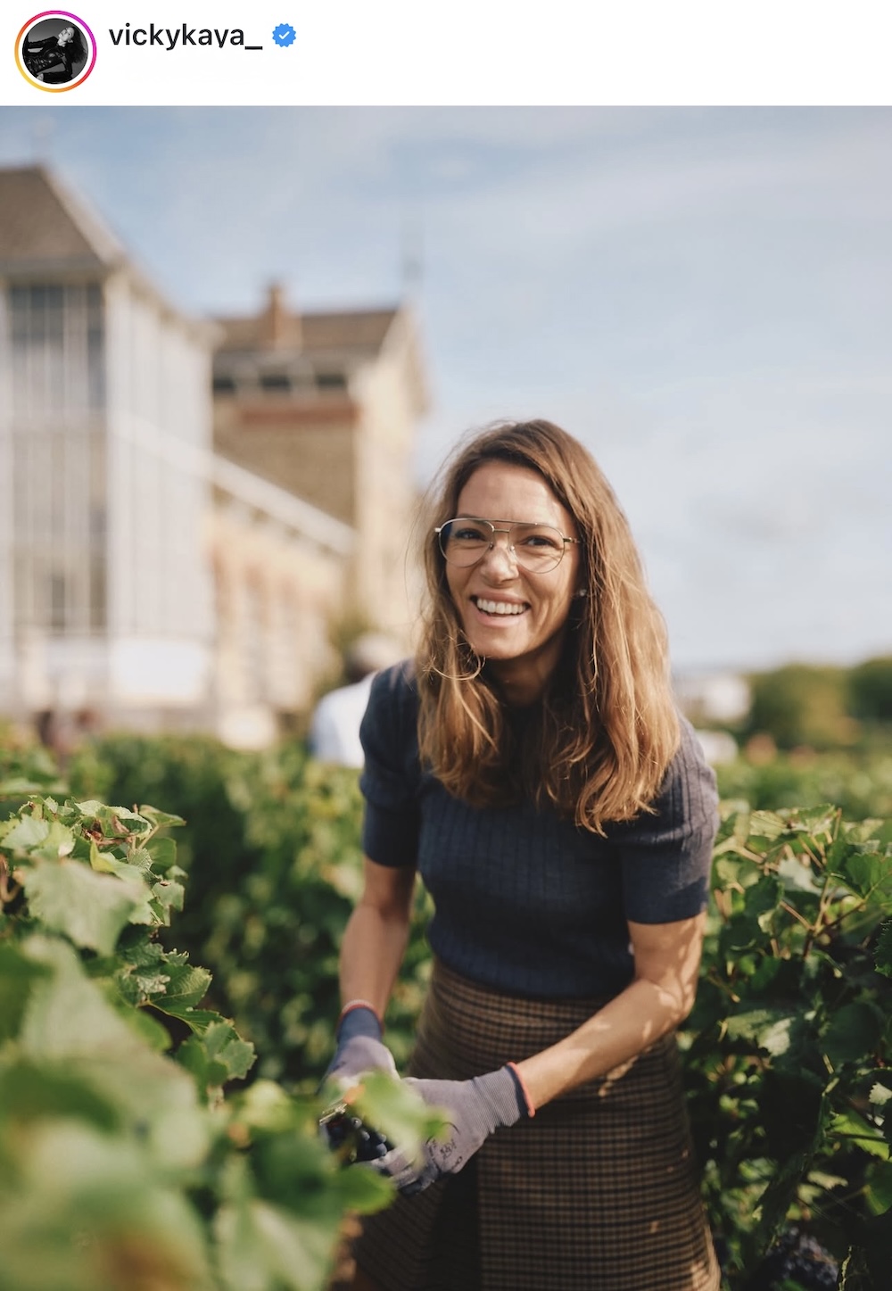 Η Βίκυ Καγιά επέλεξε να φορέσει ένα ζευγάρι wellies, δηλαδή αδιάβροχες rubber μπότες, που μάλιστα της τις παρείχε το γνωστό brand, καθώς βρέθηκε στους αμπελώνες της εταιρείας. Ήταν ένας έξυπνος τρόπος να προστατεύσει τα παπούτσια της. Τα wellies είναι ιδανικά για τις βροχερές ημέρες, αλλά και για τα βρεγμένα εδάφη που μπορούν να απειλήσουν τα υποδήματα.