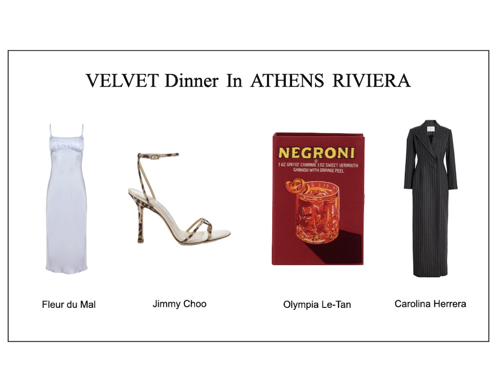 Ο αθηναϊκός χειμώνας είναι φως, όχι παγωνιά. Το satin slip dress της Fleur du Mal, το γκρι pinstripe παλτό της Carolina Herrera, τα animal print πέδιλα της Jimmy Choo και το Negroni clutch της Olympia Le-Tan δίνουν την πιο ήρεμη εκδοχή της βραδινής πολυτέλειας.