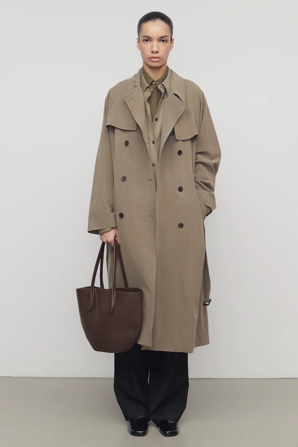 Ένας σύγχρονος τρόπος για να εφαρμόσει κανείς το trench coat στην καθημερινότητά του είναι να φοριέται ανοιχτό, χωρίς να δένεται η ζώνη, ώστε να φαίνεται το εσωτερικό σύνολο, δημιουργώντας ένα χαλαρό στυλ. Η oversized γραμμή και τα μακριά μήκη τονίζουν την κομψότητα, ενώ οι λεπτομέρειες στις ραφές και τα υφάσματα προσθέτουν προσωπικότητα.
