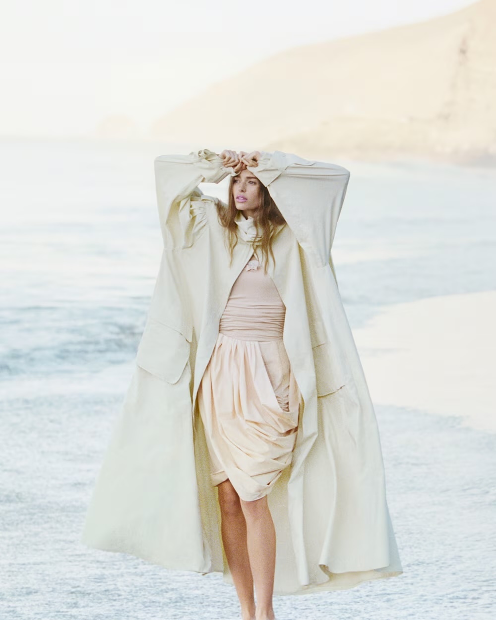 Η καπαρντίνα της Chloé ήταν πιο απαλή και θηλυκή, σε light line, αέρινη και συνδυασμένη με κομψά σύνολα σε natural pale χρωματισμούς.