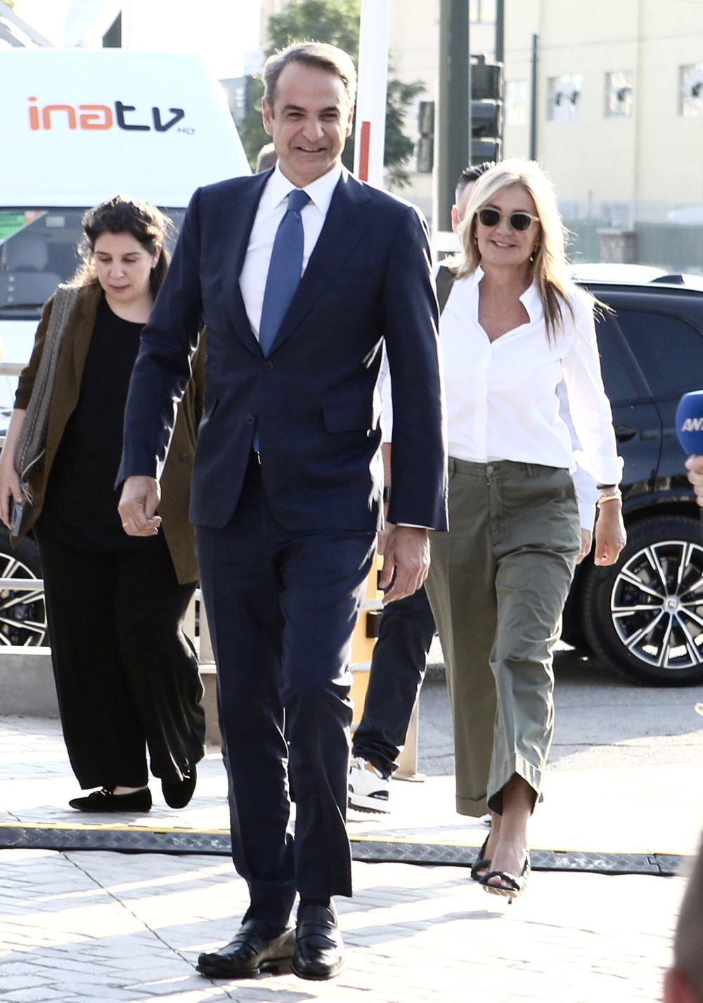 Ο πρωθυπουργός και η σύζυγός του προσήλθαν στα γραφεία λίγο πριν από τις επτά το απόγευμα για να παρακολουθήσουν τα αποτελέσματα των Ευροεκλογών.