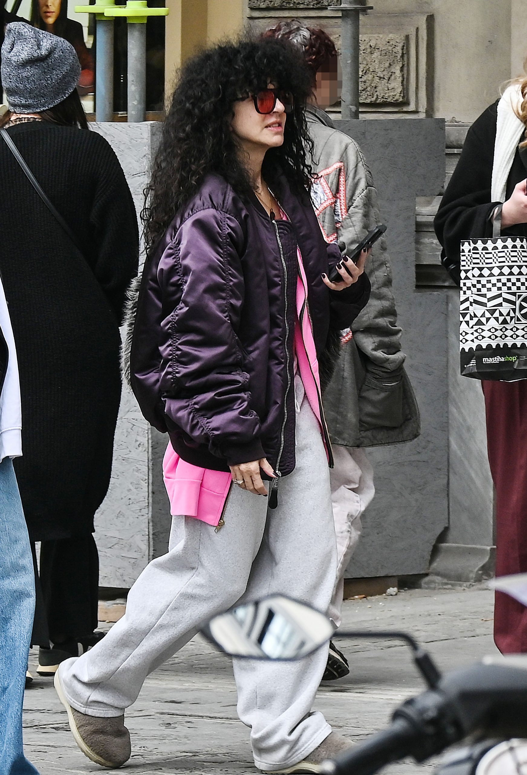 Το έντονο στοιχείο του look ήρθε μέσα από το ροζ hoodie που ξεπρόβαλλε κάτω από το jacket, προσθέτοντας μια πιο παιχνιδιάρικη πινελιά στο σύνολο. Τα μεγάλα γυαλιά ηλίου και τα φυσικά, σγουρά μαλλιά της ολοκλήρωσαν την εικόνα, διατηρώντας έναν ανεπιτήδευτο αέρα.