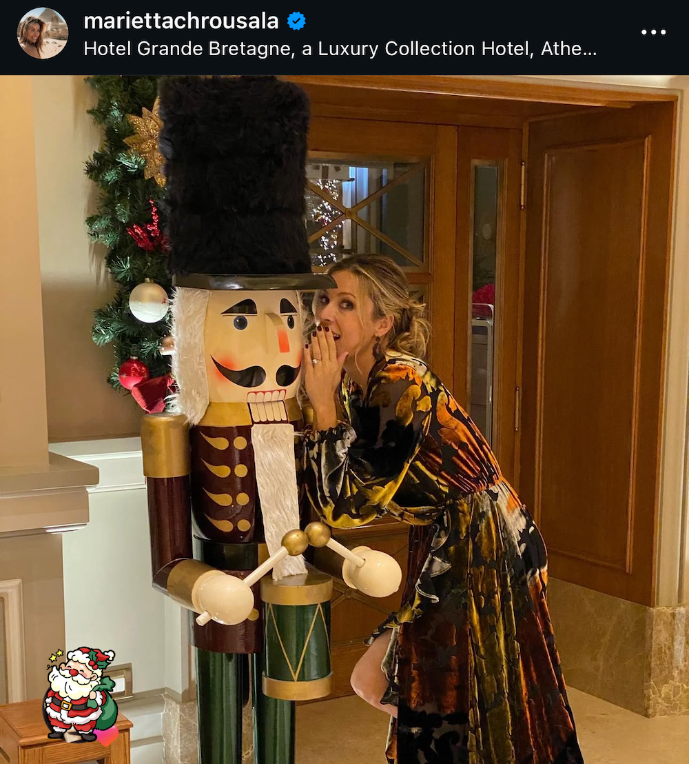 Αυτό το χαμόγελο δεν είναι φιλοτέχνημα. Είναι κομμάτι χαρακτήρα. Είναι το στοιχείο που ενώνει όλα τα Χριστούγεννα της, ανεξάρτητα από το που βρίσκεται, τι φορά, ποια είναι η εποχή. Γι’ αυτό και η Μαριέττα, όσο κι αν αλλάζει το στιλ της μέσα στα χρόνια, παραμένει recognizable. Γιατί η βάση της δεν είναι το ρούχο. Είναι η διάθεση.