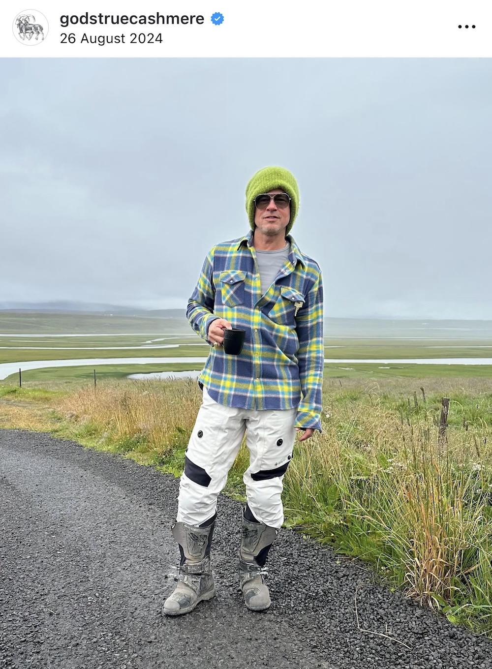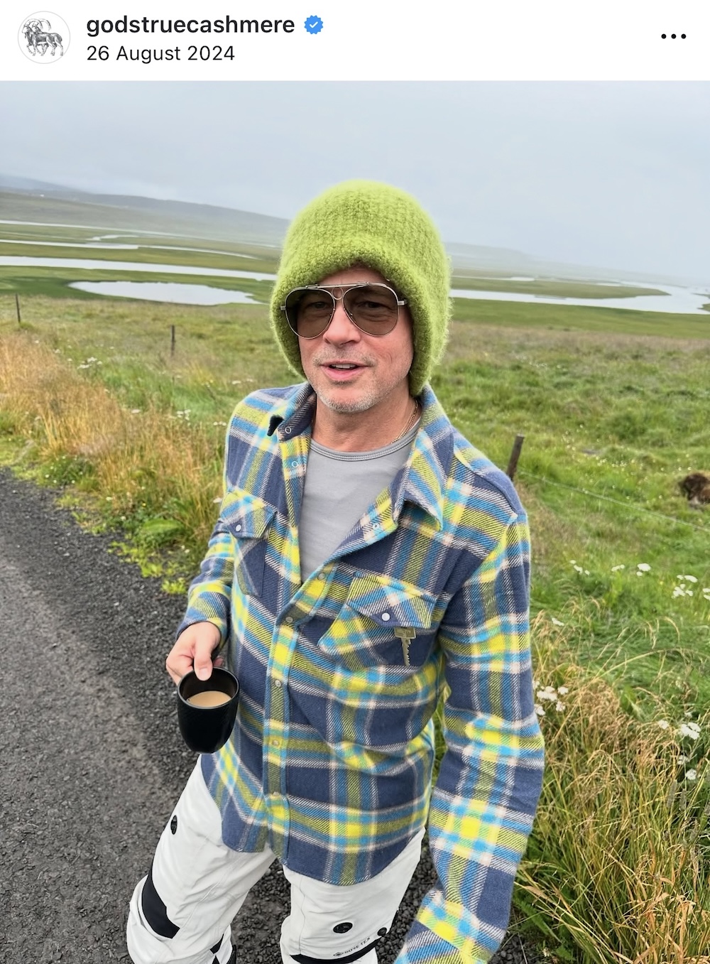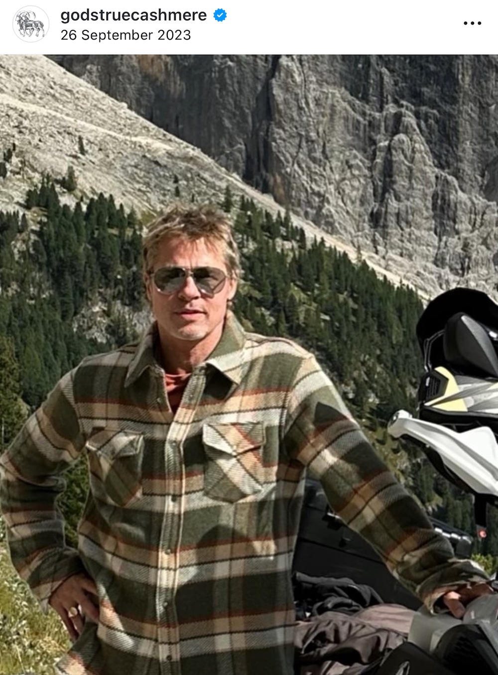 Ο Μπραντ Πιτ δεν έχει προσωπικό λογαριασμό στο Instagram, καθώς έχει δηλώσει πως αισθάνεται πολύ καλά χωρίς αυτό και επιθυμεί να διαφυλάξει την ιδιωτικότητά του. Ένας εύκολος τρόπος, όμως, για να τον παρακολουθεί κανείς είναι μέσω του Instagram του brand God’s True Cashmere, του οποίου είναι συνιδιοκτήτης. Εκεί εμφανίζεται συχνά φωτογραφημένος φορώντας το αγαπημένο του trend, το shacket, κάτι απολύτως φυσικό, αφού στην Αμερική το shacket αποτελεί κομμάτι της παράδοσης.
