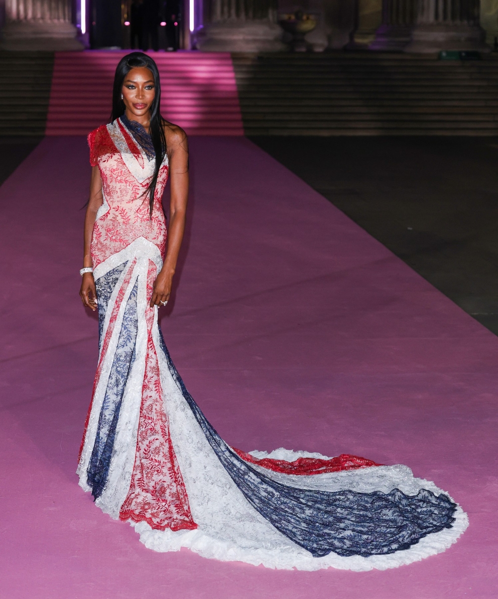 Η Ναόμι Κάμπελ που παρευρέθηκε και εκείνη στην μεγάλη βραδιά, επέλεξε για τη βραδιά μια τουαλέτα Givenchy με τη Βρετανική σημαία, συνδυάζοντας τη μόδα με ένα παιχνιδιάρικο εθνικό στοιχείο.