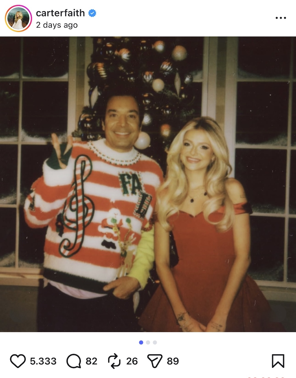 Το ugly sweater έχει πλέον εμπνεύσει και τη μουσική. Ο Jimmy Fallon κυκλοφόρησε το τραγούδι Ugly Sweater με τη συμμετοχή της country τραγουδίστριας Carter Faith. Το κομμάτι, που περιλαμβάνεται στο άλμπουμ Holiday Seasoning, βασίζεται σε μια χιουμοριστική ιστορία όπου ο Fallon εμφανίζεται σε πάρτι φορώντας το χαρακτηριστικό του πουλόβερ, μόνο και μόνο για να διαπιστώσει ότι κανείς άλλος δεν έχει ακολουθήσει το ίδιο dress code. Το τραγούδι, αν και joyful, μεταφέρει ένα μήνυμα αποδοχής και αυθεντικότητας, υπογραμμίζοντας ότι οι μικρές αστείες στιγμές μπορούν να προκαλέσουν ζεστασιά και χαμόγελα.