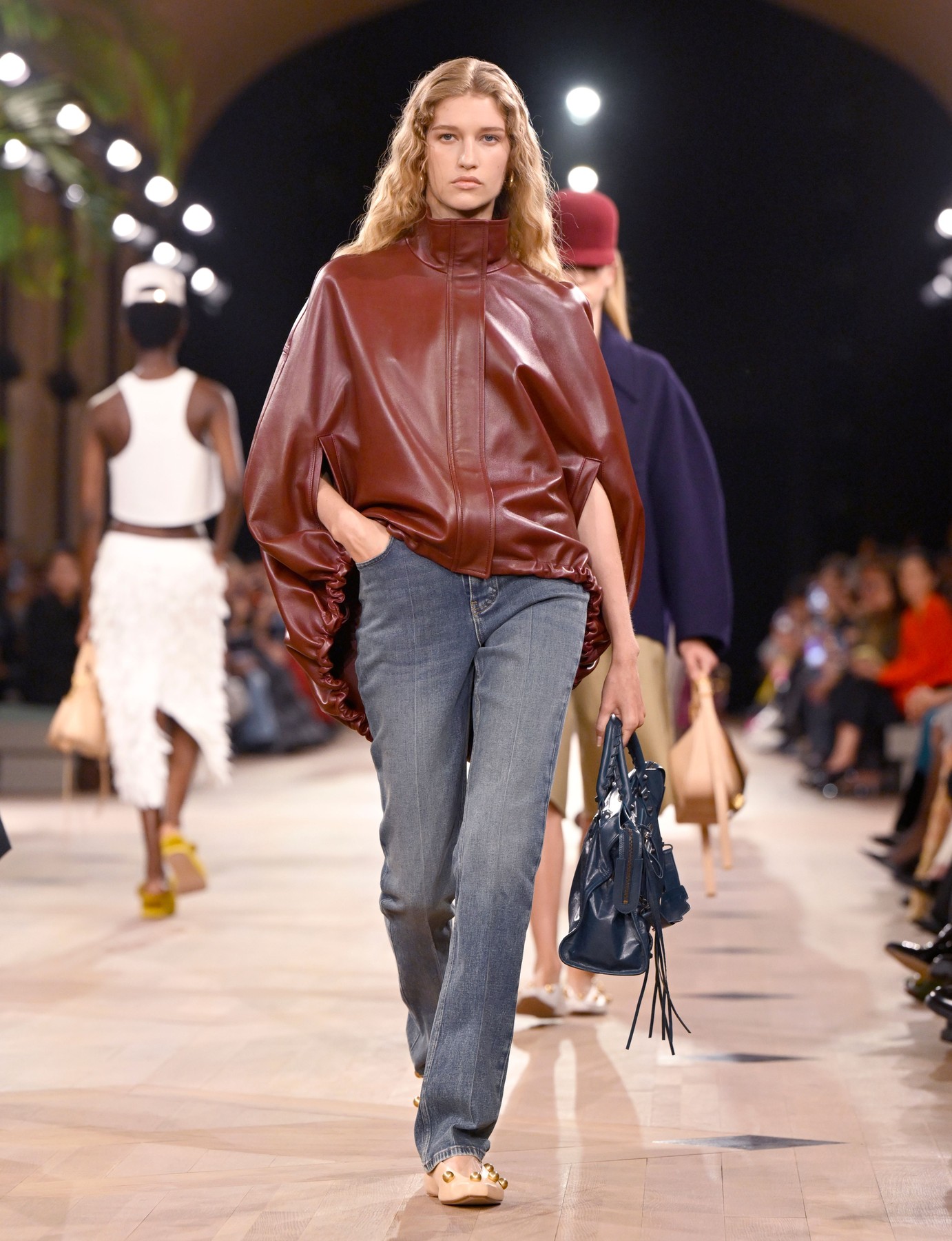 Στο σόου του Balenciaga και στο ντεμπούτο του Pierpaolo Piccioli, είδαμε poncho-adjacent shapes που μετατρέπουν το casual σε σύγχρονα polished. Φορέστε ένα πουλόβερ από κάτω για office vibes και αφαιρέστε το για night-out energy. Μοντέρνο, effortless, cool.