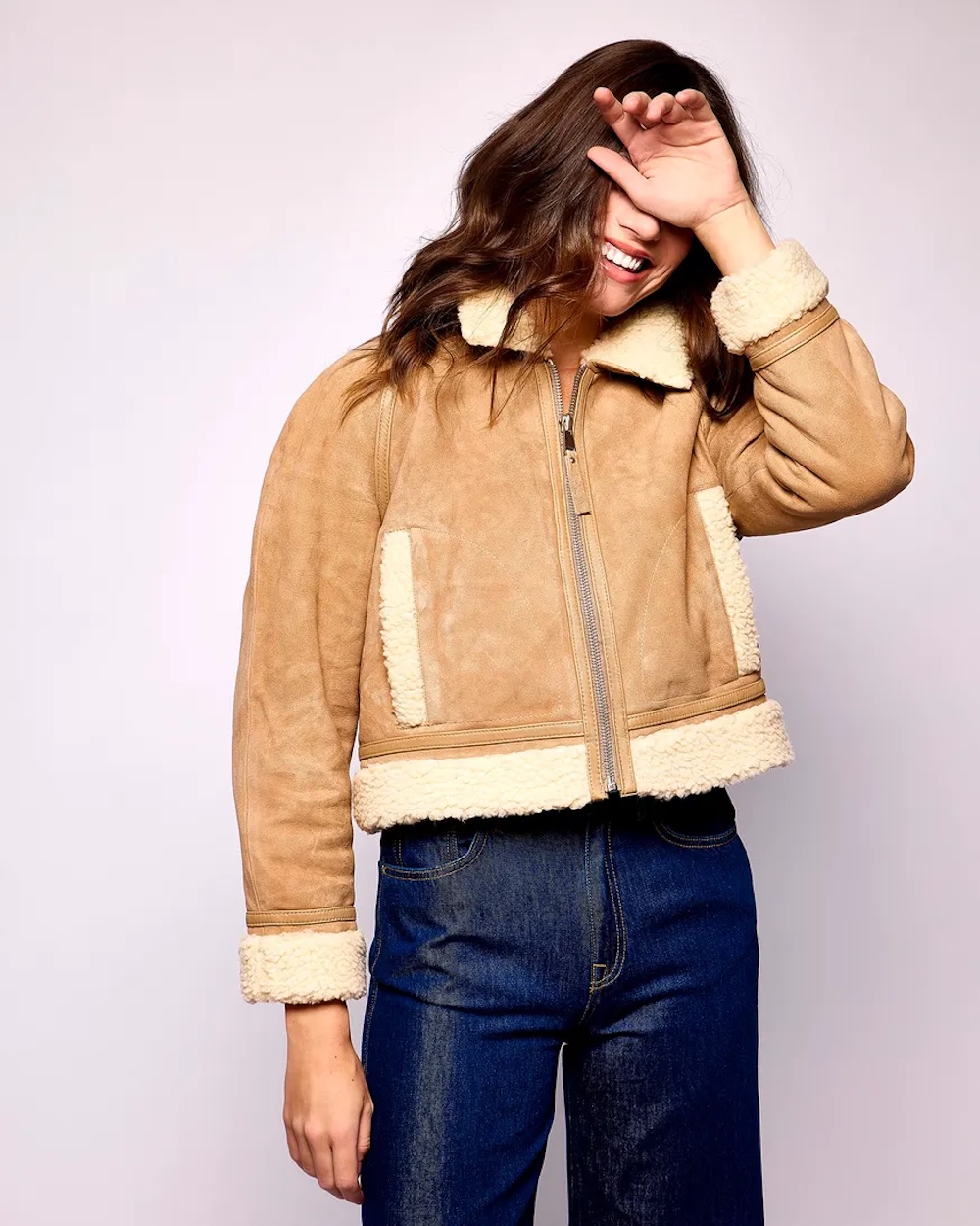 1. Shearling cropped jacket – Avoca Ένα από τα κομμάτια που θυμίζουν περισσότερο την αισθητική της Ραφαέλας Ψαρρού. Ζεστό, καθημερινό και ταυτόχρονα κοριτσίστικο.