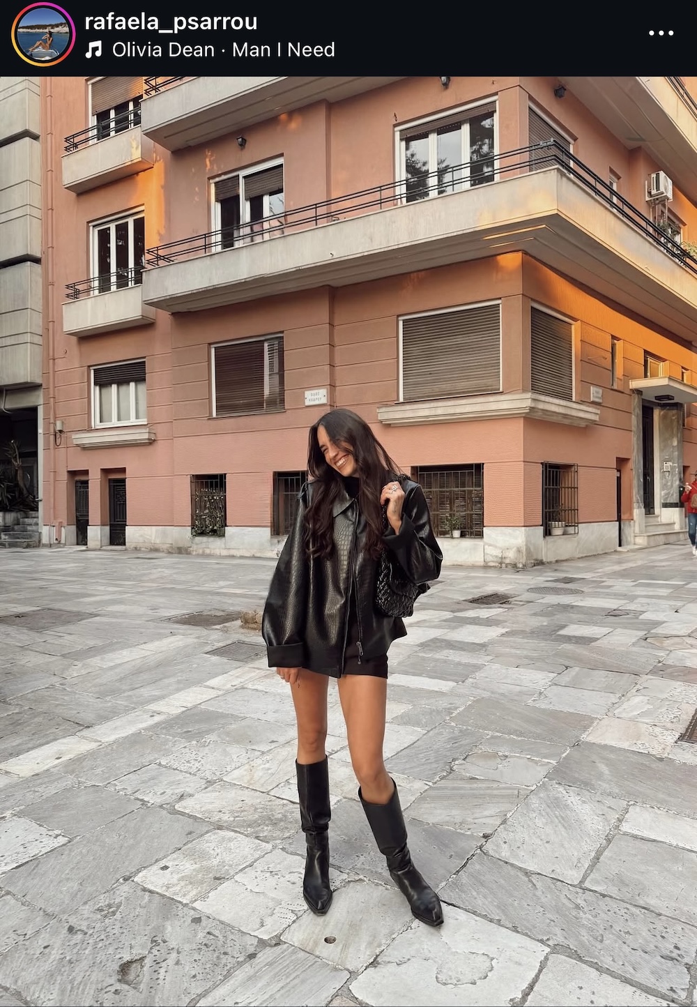 3. Δερμάτινη ζακέτα με όψη παλαιωμένου – Zara Το κομμάτι που ανανεώνει εύκολα κάθε urban εμφάνιση. Δίνει χαρακτήρα και φέρνει την αθηναϊκή street ενέργεια που αγαπά η Ραφαέλα.