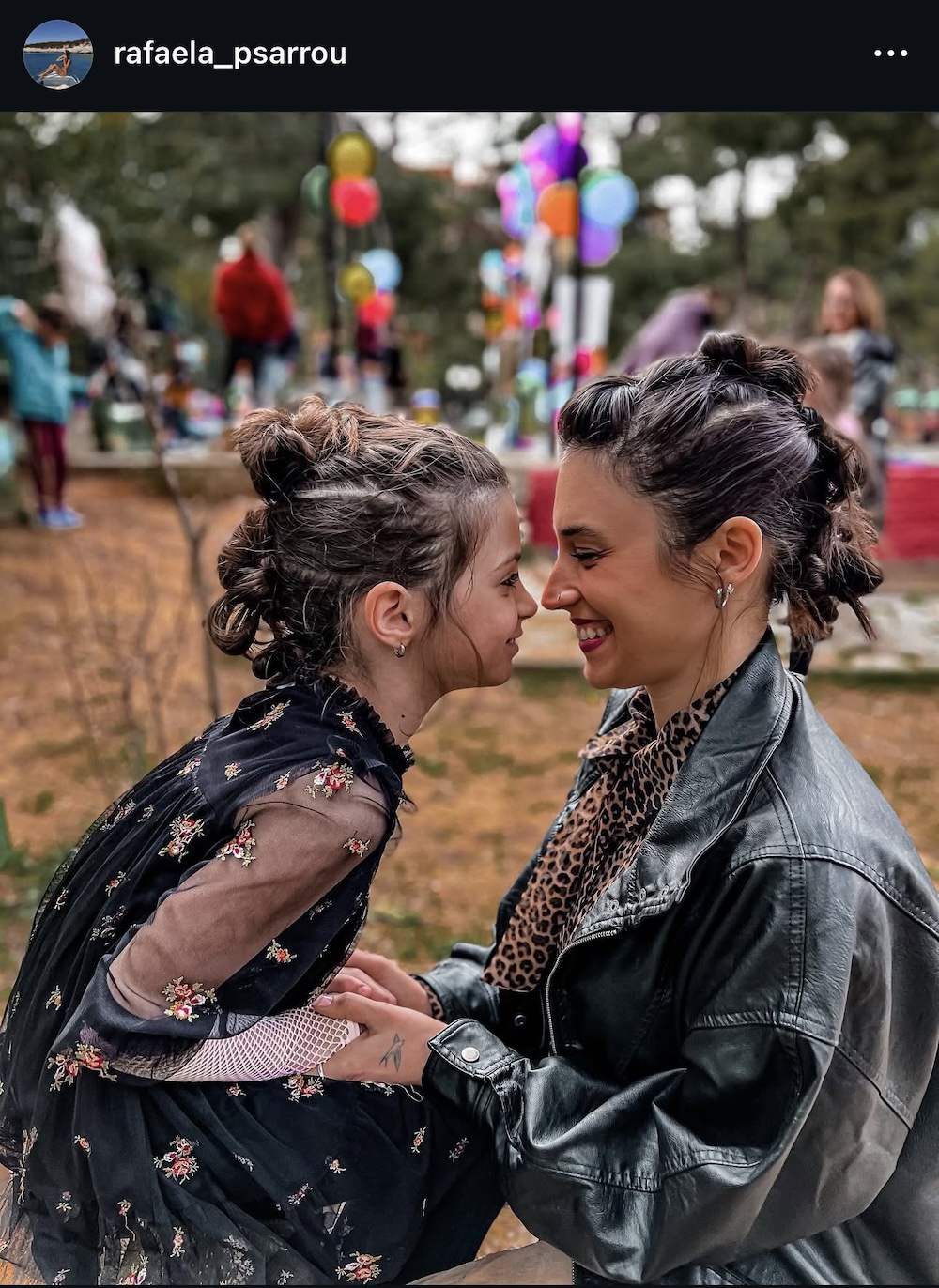 Η πιο γνήσια πλευρά της Ραφαέλας φαίνεται στις στιγμές με τα παιδιά τους. Στις βόλτες στη Βουλιαγμένη. Στα γενέθλια της κόρης τους. Στις μέρες που τρέχουν όλοι μαζί. Εκεί το διακριτικό sexiness παίρνει πιο ζεστή και καθημερινή διάσταση. Δεν χάνεται μέσα στη μητρότητα. Γίνεται μέρος της.