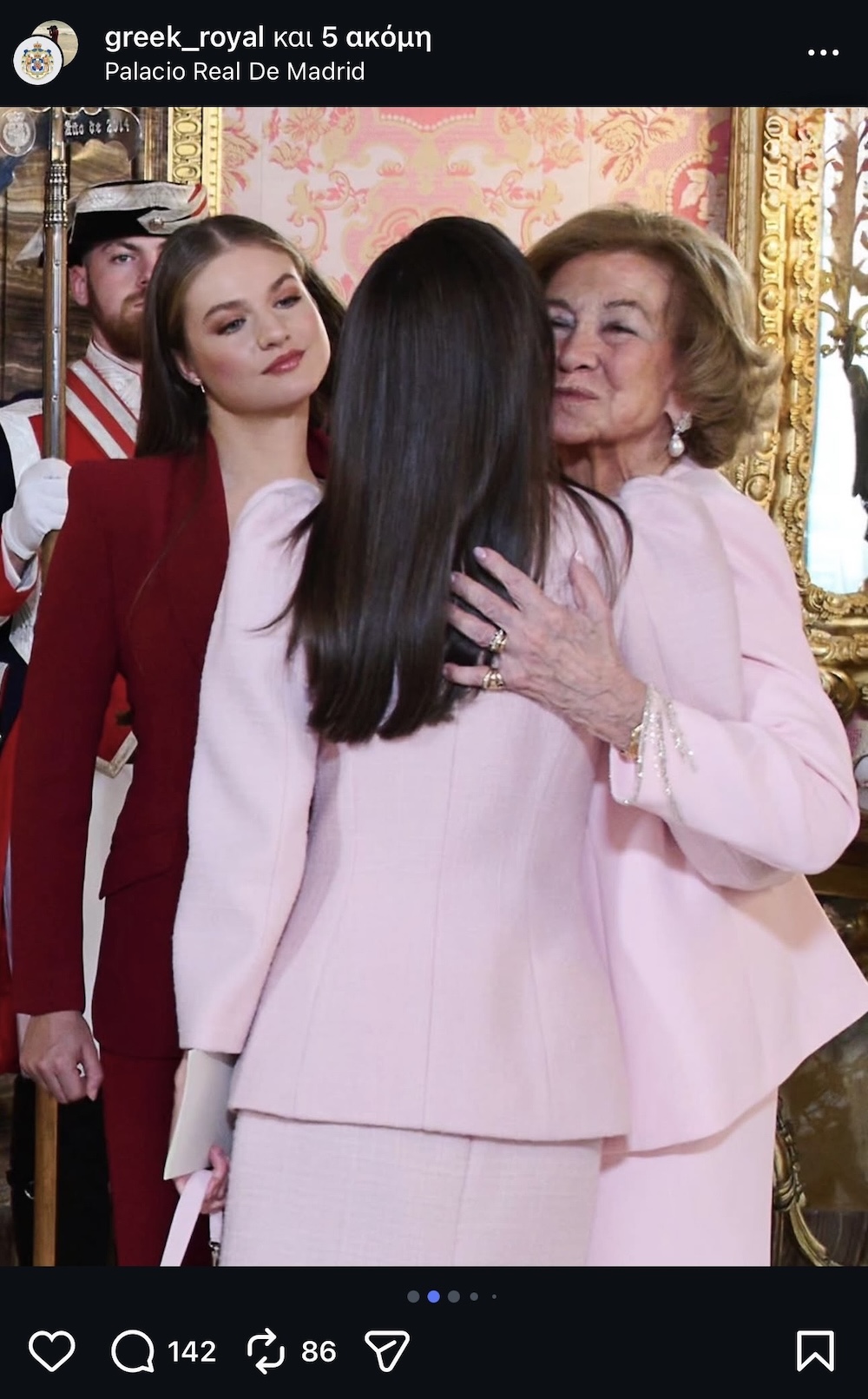 Η εμφάνιση της Reina Sofía de España δίπλα στη Reina Letizia de España, με τις δύο γυναίκες σε διαφορετικές αλλά συγγενικές ροζ αποχρώσεις, δημιούργησε μια εικόνα όπου η παράδοση και το παρόν προχώρησαν για λίγο παράλληλα. Φαινόταν σαν το ροζ να λειτουργεί ως ένας σιωπηλός ενδιάμεσος, μια μικρή αισθητική γέφυρα ανάμεσα σε δύο εποχές. Με την Princesa Leonor και την Infanta Sofía στο ίδιο κάδρο, η στιγμή απέκτησε διαγενεακό βάρος. Δεν ήταν μόνο η εικόνα τεσσάρων γυναικών. Ήταν μια υπενθύμιση ότι, μέσα στα χρώματα, η κάθε γενιά αφήνει ένα δικό της αποτύπωμα στο θεσμό που υπηρετεί.