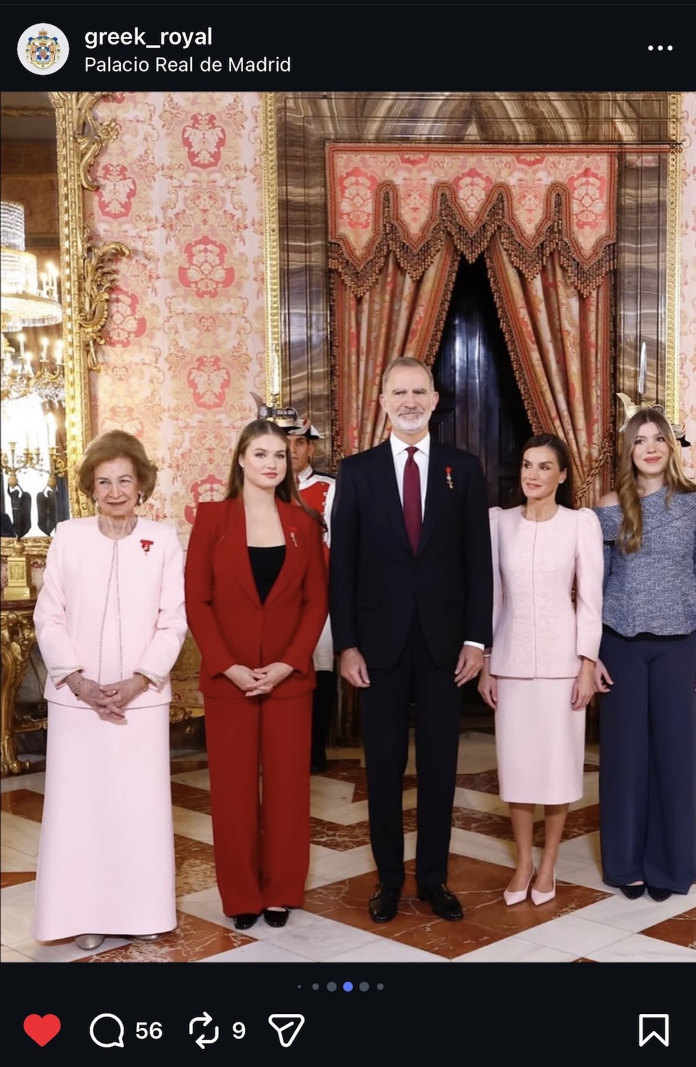 Στην ίδια τελετή, η Reina Letizia de España εμφανίστηκε επίσης με μια ροζ απόχρωση. Η σύμπτωση αυτή δημιούργησε ένα απροσδόκητο οπτικό νήμα ανάμεσα στις δύο γυναίκες, δίνοντας στην τελετή έναν τόνο συμφιλίωσης ανάμεσα στην παράδοση και την τωρινή εκδοχή της βασιλικής οικογένειας της Ισπανίας.