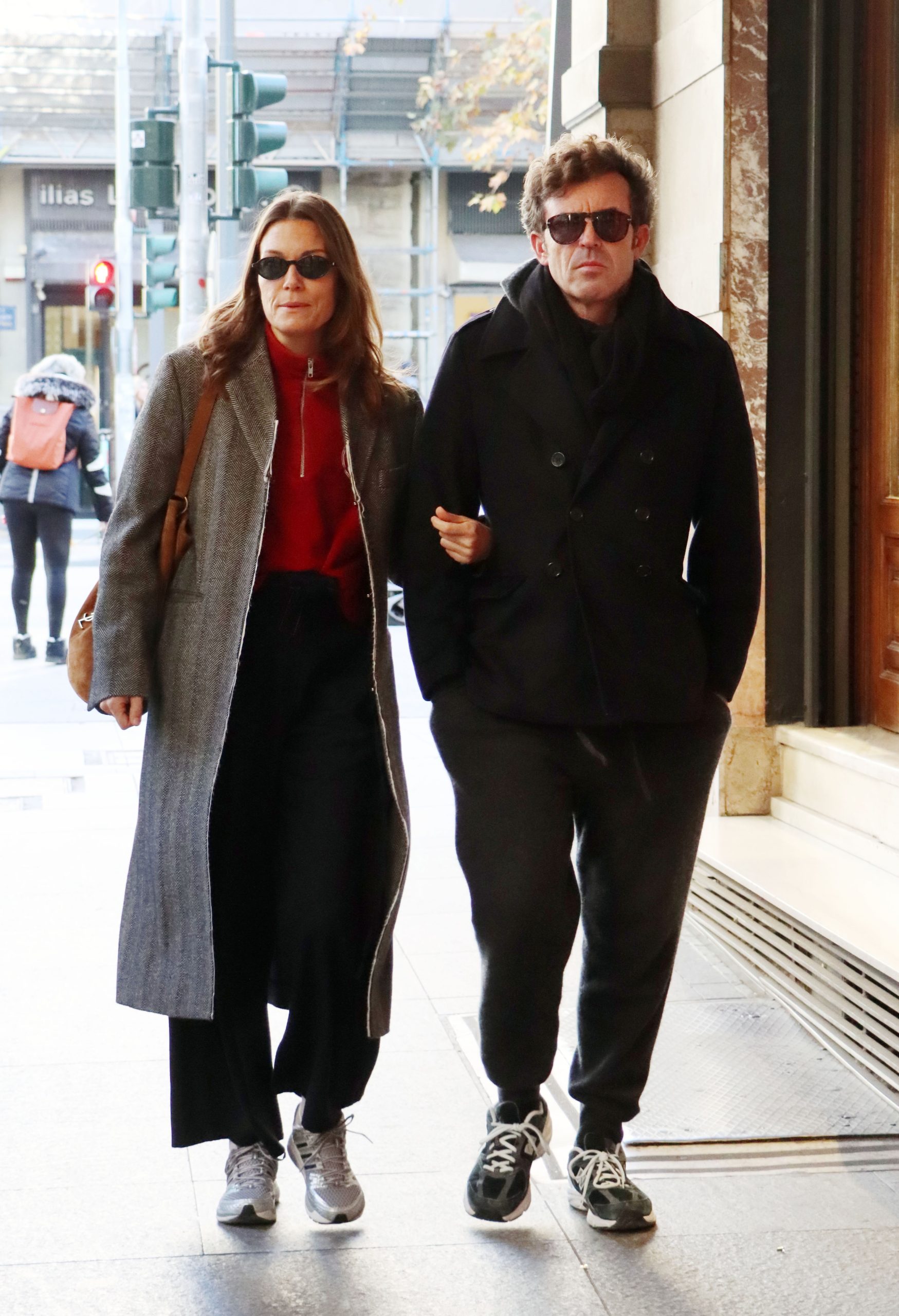 Το ζευγάρι περπατούσε χέρι-χέρι σε κεντρικό δρόμο της πόλης, δείχνοντας άνετο και χαλαρό. Η Βίκυ Καγιά επέλεξε ένα κομψό, αλλά καθημερινό look, με μακρύ παλτό, άνετο παντελόνι και sneakers, συνδυάζοντας πρακτικότητα και διαχρονικό στυλ. Από την πλευρά του, ο Ηλίας Κρασσάς κινήθηκε σε αντίστοιχα casual ύφος, με σκούρα ρούχα και αθλητικά παπούτσια.