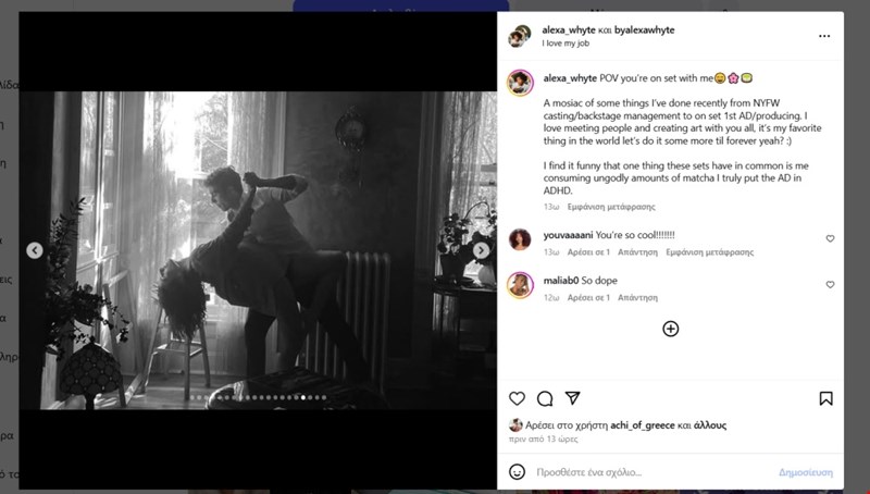 Αν και δεν είναι γνωστό αν οι δυο τους είναι απλώς φίλοι ή κάτι περισσότερο, η οικειότητα και η χημεία που αποπνέει η φωτογραφία δεν πέρασε απαρατήρητη. Ο Αχιλλέας και η Ολίβια έχουν κοινούς φίλους και κινούνται στους ίδιους καλλιτεχνικούς κύκλους του Μανχάταν, όπου συχνάζουν νέοι ηθοποιοί και influencers.