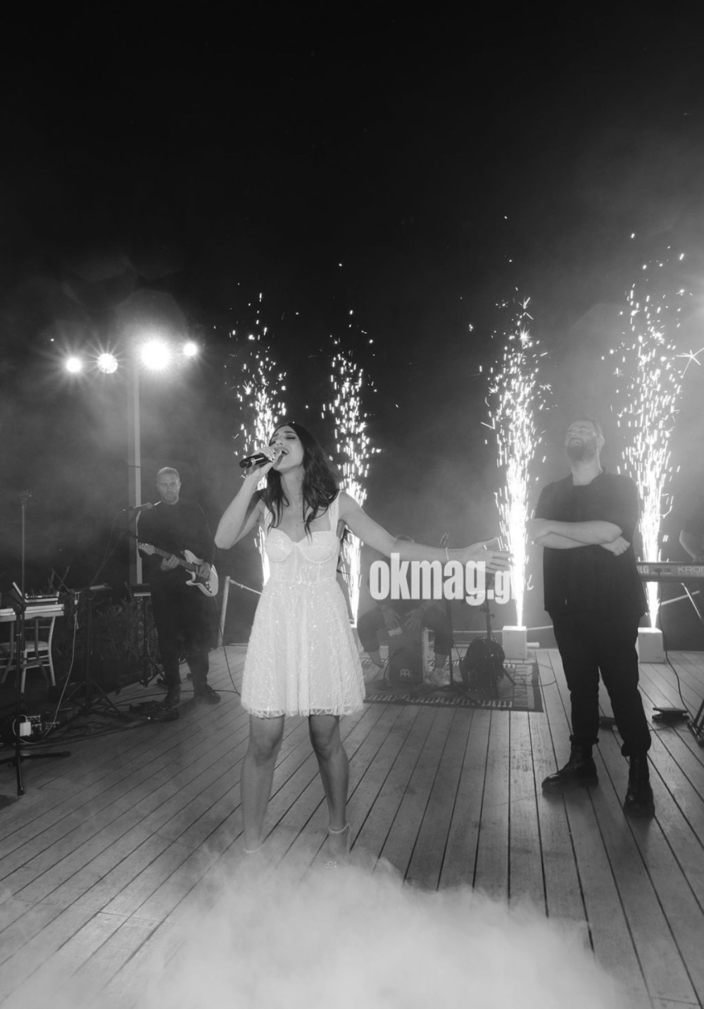 Κατά τη διάρκεια της δεξίωσης ο γαμπρός μάγεψε τον κόσμο με τις χορευτικές του δυνατότητες, ενώ η νύφη τραγούδησε για τον αγαπημένο της, συγκινώντας τους παρευρισκόμενους.