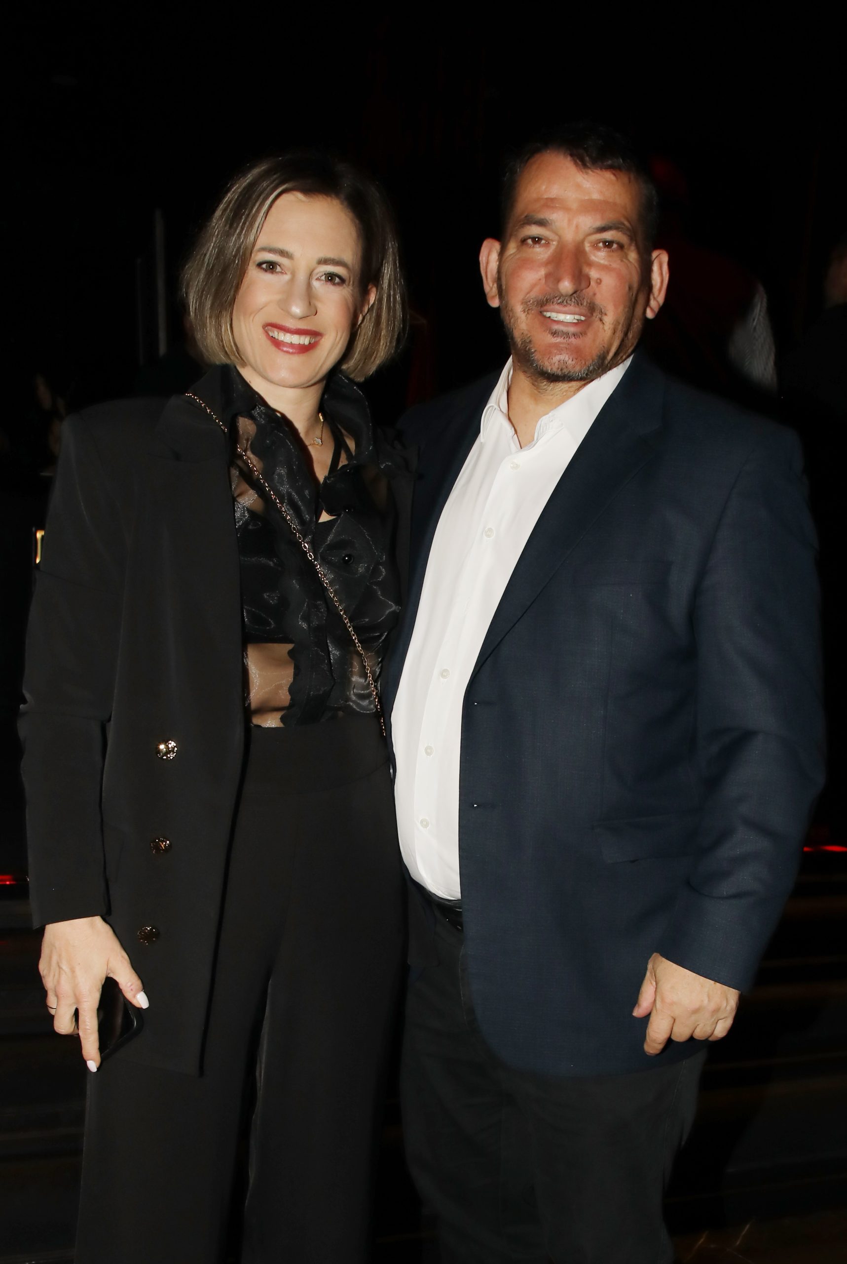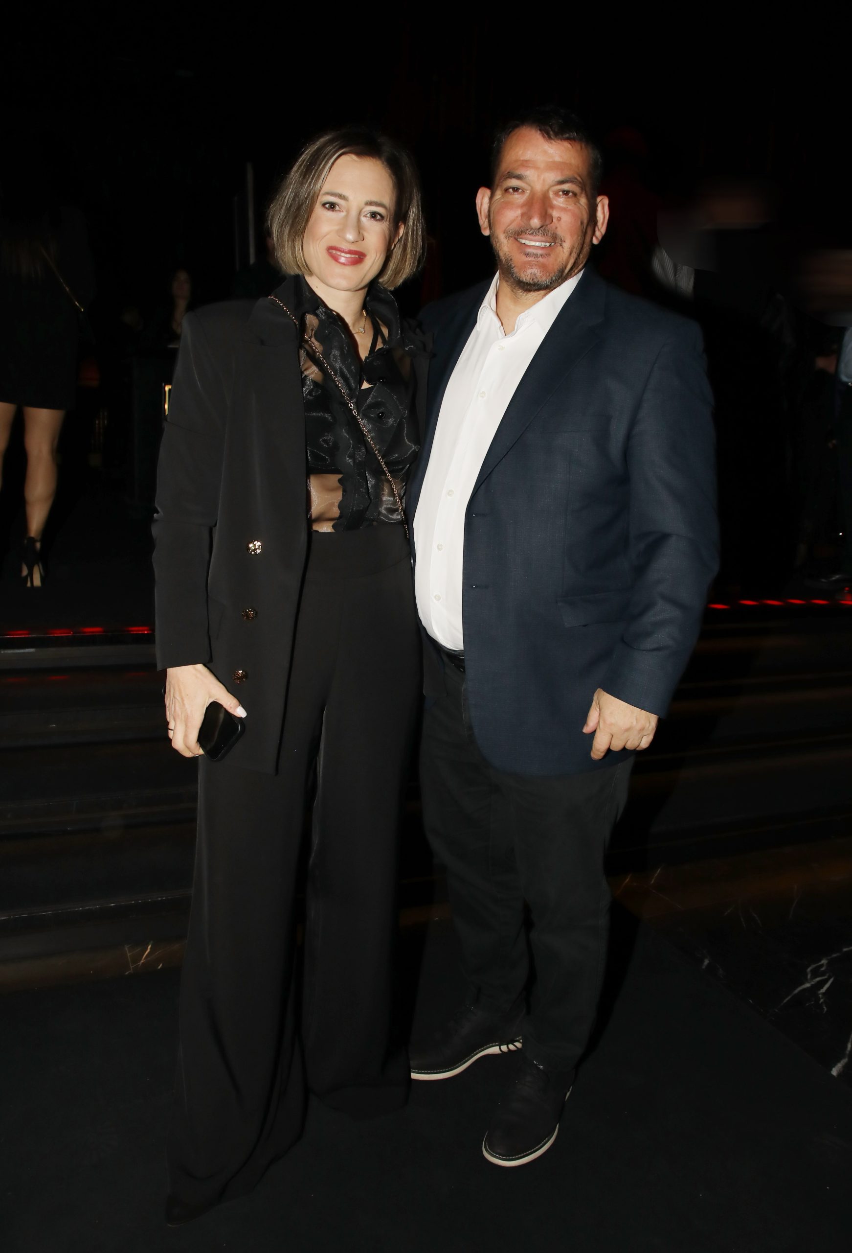 Η Αφροδίτη Σκαφίδα επέλεξε ένα κομψό μαύρο σύνολο με διαφάνειες, διατηρώντας ένα minimal αλλά ιδιαίτερα elegant ύφος, ενώ ο Πύρρος Δήμας εμφανίστηκε με σκούρο κοστούμι και λευκό πουκάμισο, σε μια κλασική και διαχρονική επιλογή.