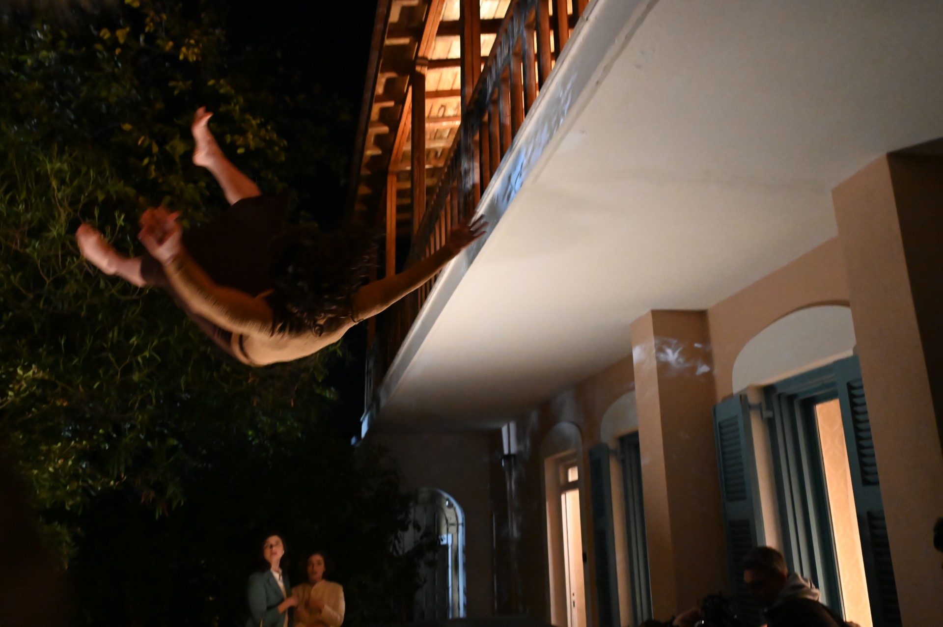 Η Ιφιγένεια Καραμήτρου θα πει για αυτή τη σκηνή «ήταν ένα πάρα πολύ δύσκολο, αλλά πολύ ωραίο γύρισμα, πολύ αβανταδόρικο. Είχαμε κασκαντέρ, κάναμε πτώσεις σε στρώματα, ήταν μια πάρα πολύ ωραία εμπειρία και πιστεύω ότι το αποτέλεσμα θα μας δικαιώσει.»