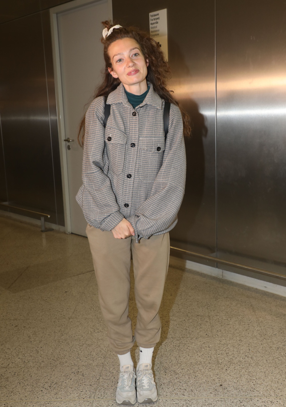 Το βράδυ της Κυριακής η Αμάντα Γεωργιάδη προσγειώθηκε στο «Ελευθέριος Βενιζέλος» και μίλησε στους δημοσιογράφους για την εμπειρία της στη Eurovision. Με ένα καρό overshirt, μπεζ παντελόνι, λευκά αθλητικά παπούτσια και τα μαλλιά της πιασμένα ψηλά, η Αμάντα Γεωργιάδη έδειχνε καλοδιάθετη και γεμάτη ενέργεια, τέτοια που έσπρωχνε μόνη της την τεράστια κόκκινη βαλίτσα με την οποία γύρισε στην Ελλάδα από το γειτονικό Τορίνο.