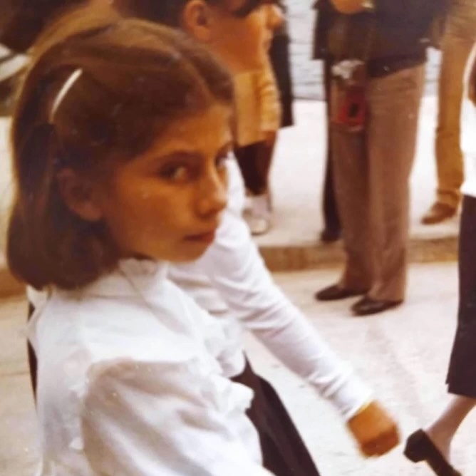 Στη φωτογραφία τη βλέπουμε σε μικρή ηλικία, με προσεγμένη εμφάνιση, χαρακτηριστικό ύφος και εκείνη τη σοβαρότητα που απαιτούσε η περίσταση, κερδίζοντας αμέσως τα σχόλια των διαδικτυακών της φίλων.