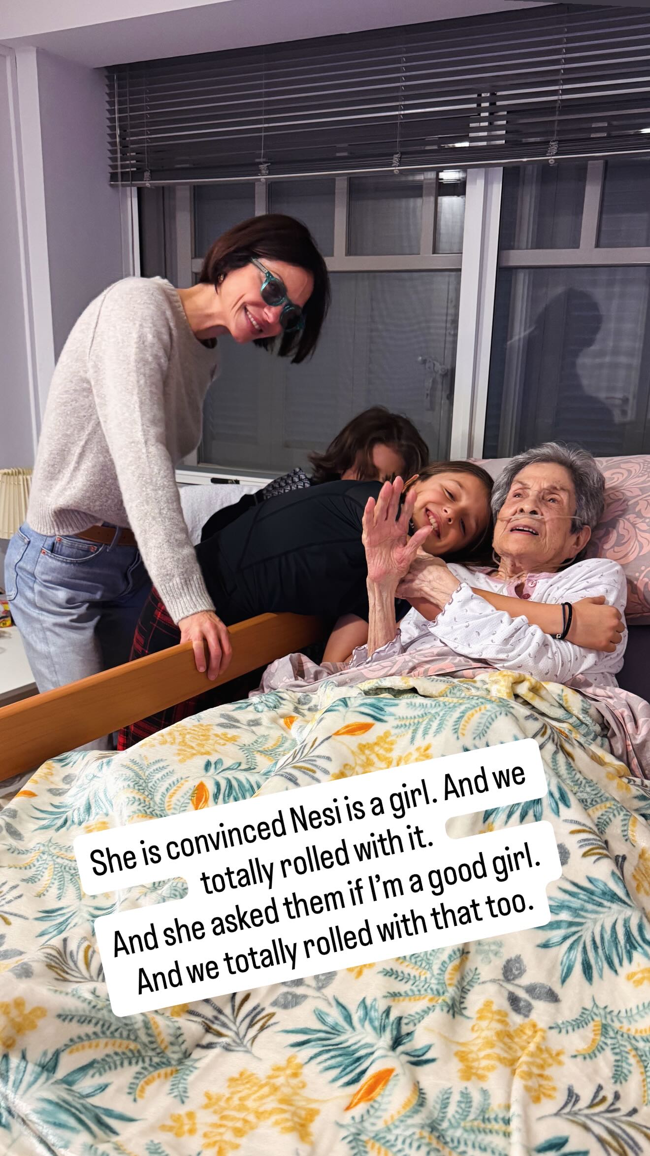 Η ανάρτηση είχε έντονο συναισθηματικό φορτίο, καθώς πρόκειται για μια γυναίκα η οποία βρίσκεται στο κρεβάτι με οξυγόνο, υποδεχόμενη με ιδιαίτερη χαρά την εγγονή της και τα δισέγγονά της.