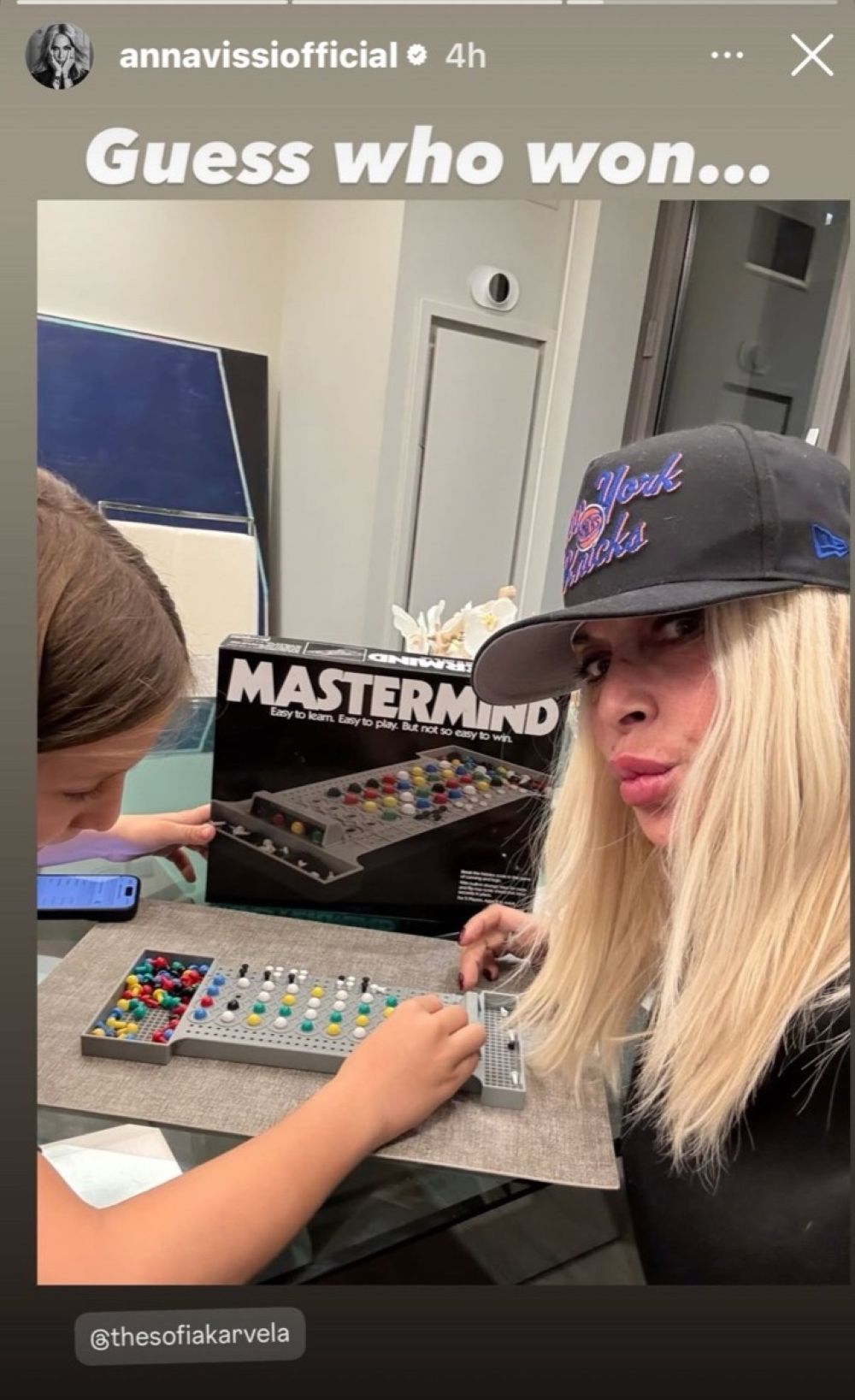 Λίγο αργότερα, η τραγουδίστρια μοιράστηκε και δεύτερο στιγμιότυπο. Στη φωτογραφία η ίδια και ο ένας εγγονός της παίζουν το κλασικό επιτραπέζιο παιχνίδι. Η λεζάντα γράφει «Guess who won…», αφήνοντας να εννοηθεί ότι ο ανταγωνισμός στο σπίτι της Σοφίας Καρβέλα είναι μεγάλος.