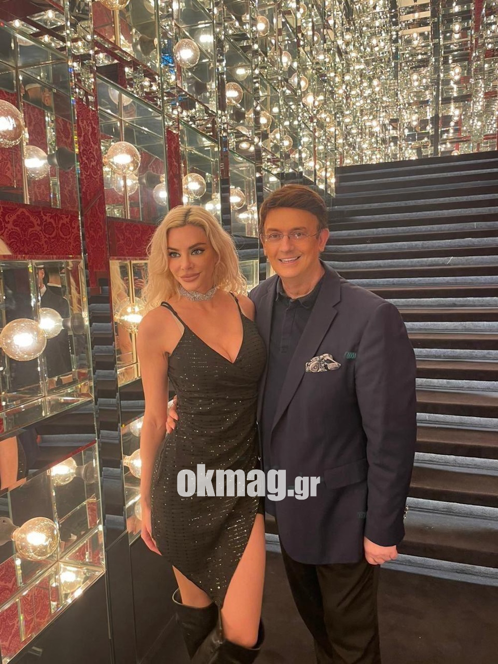 Το μοντέλο -και όχι μόνο-, που τα τελευταία χρόνια ζει και εργάζεται στην Ιταλία, πιστό στο στιλ που το χαρακτηρίζει, πόζαρε στον φακό, δίπλα στον Γιάννη Καζανίδη, με σέξι μαύρο φόρεμα, μπότες και silver choker.